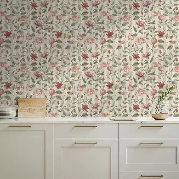 Papel pintado Tallos florales con mariposas sobre un fondo claro a00698