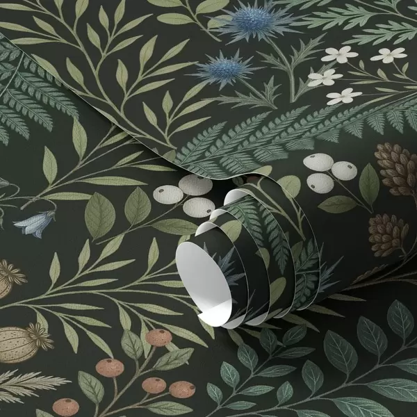 Papel tapiz Hierbas, bayas y semillas sobre un fondo oscuro Nr. a00706