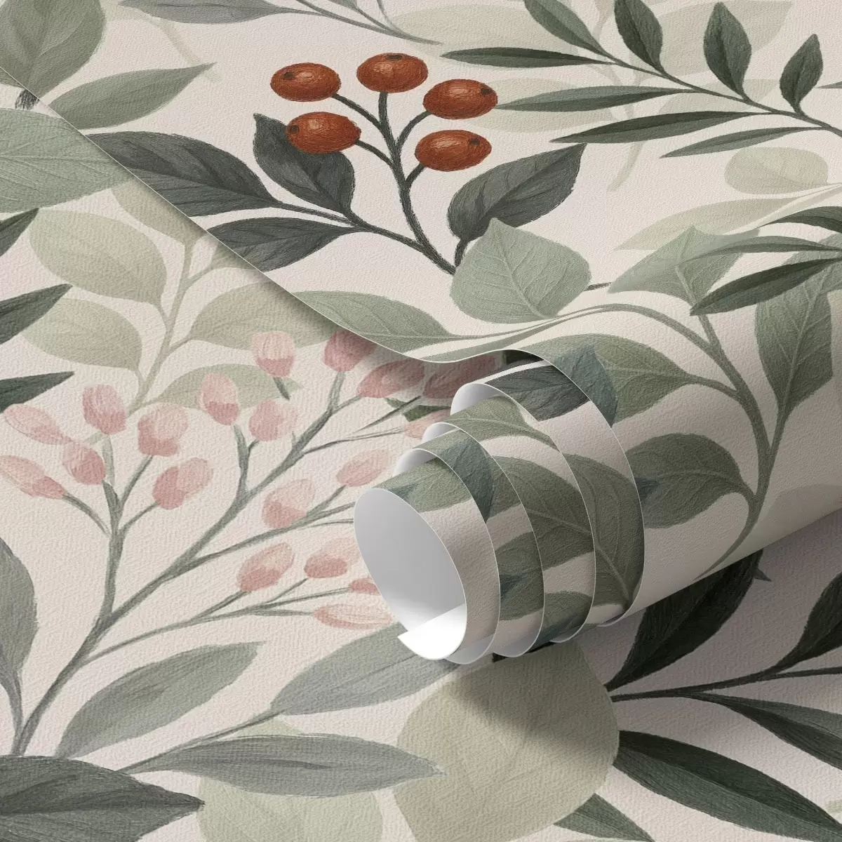Papel tapiz Hojas con bayas, fondo claro Nr. a00713