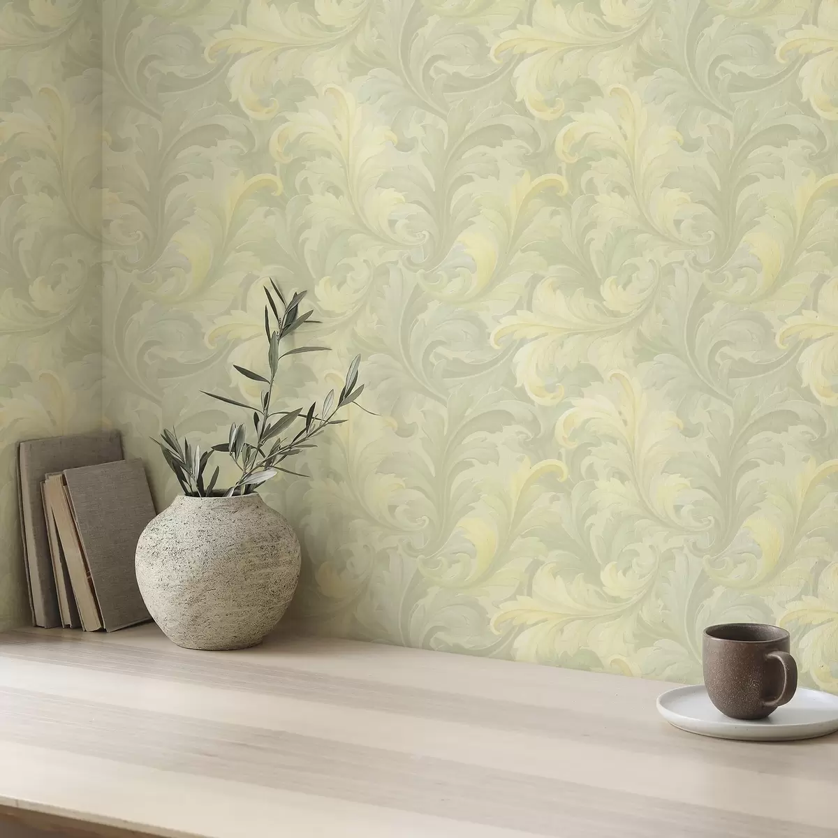 Papel tapiz Volutas barrocas de acanto en tonos suaves Nr. a00714