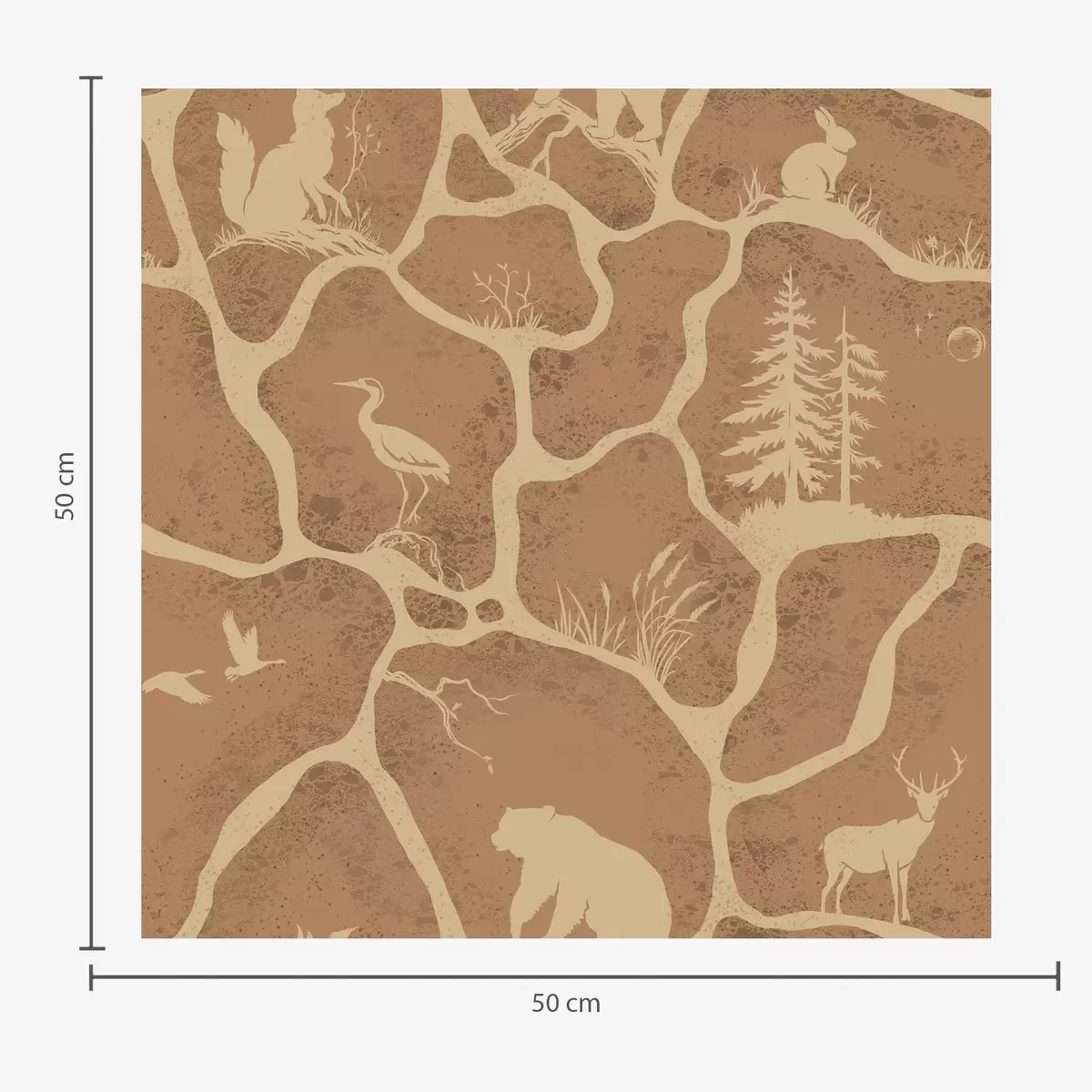 Papel tapiz Siluetas de animales y árboles en un paisaje natural con textura de piedra Nr. a00727