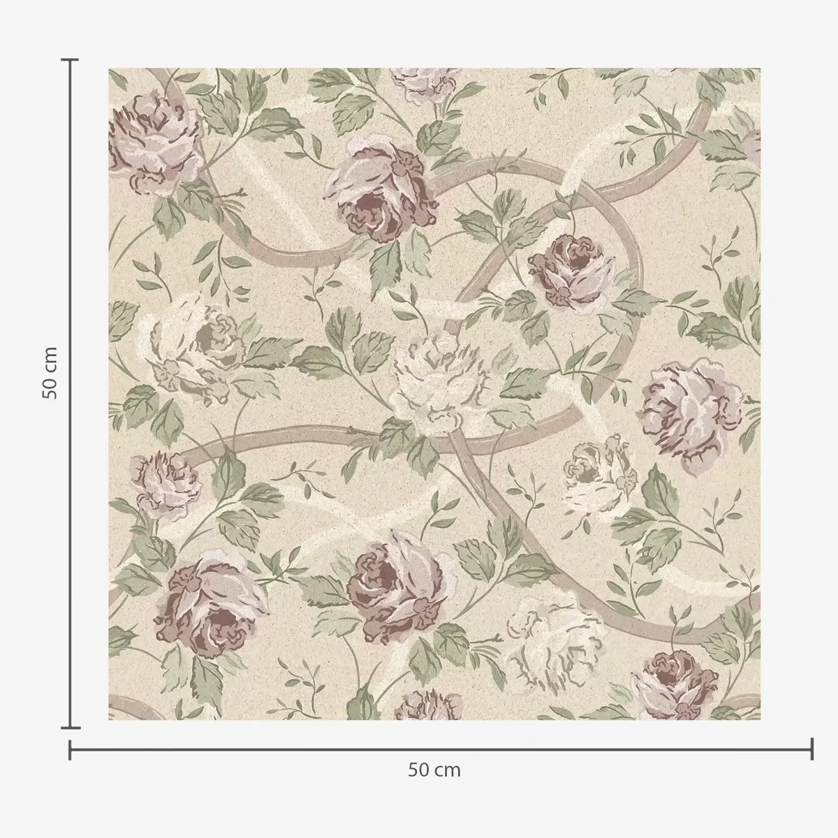 Papel tapiz Rosas con hojas verdes sobre un fondo beige cálido Nr. a00729