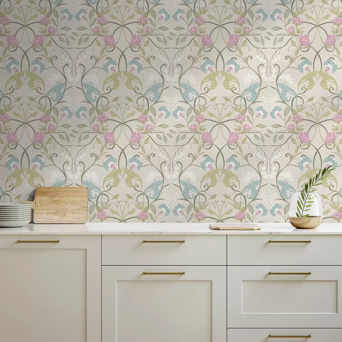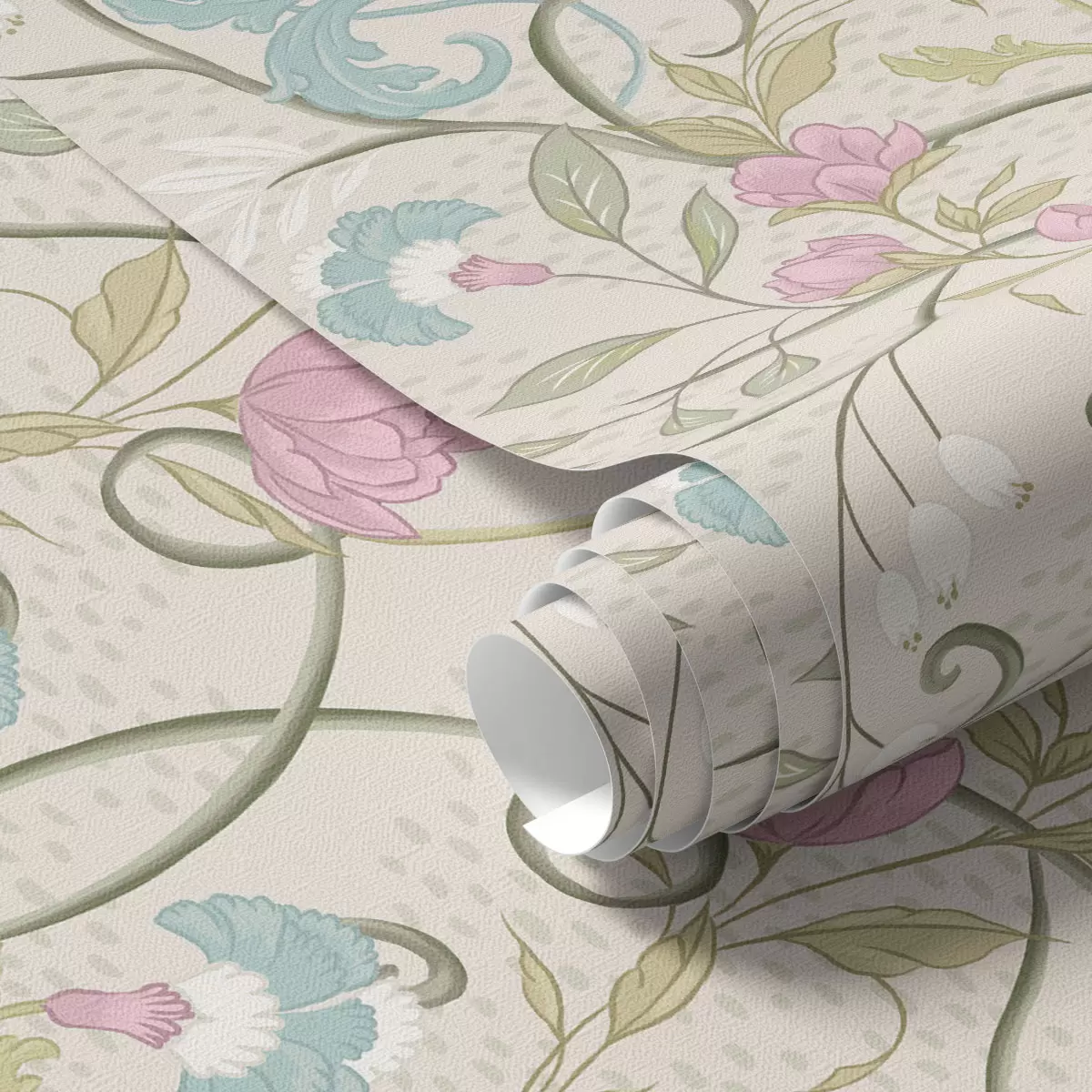 Papel tapiz Elegante diseño floral con flores rosas y azules Nr. a00730