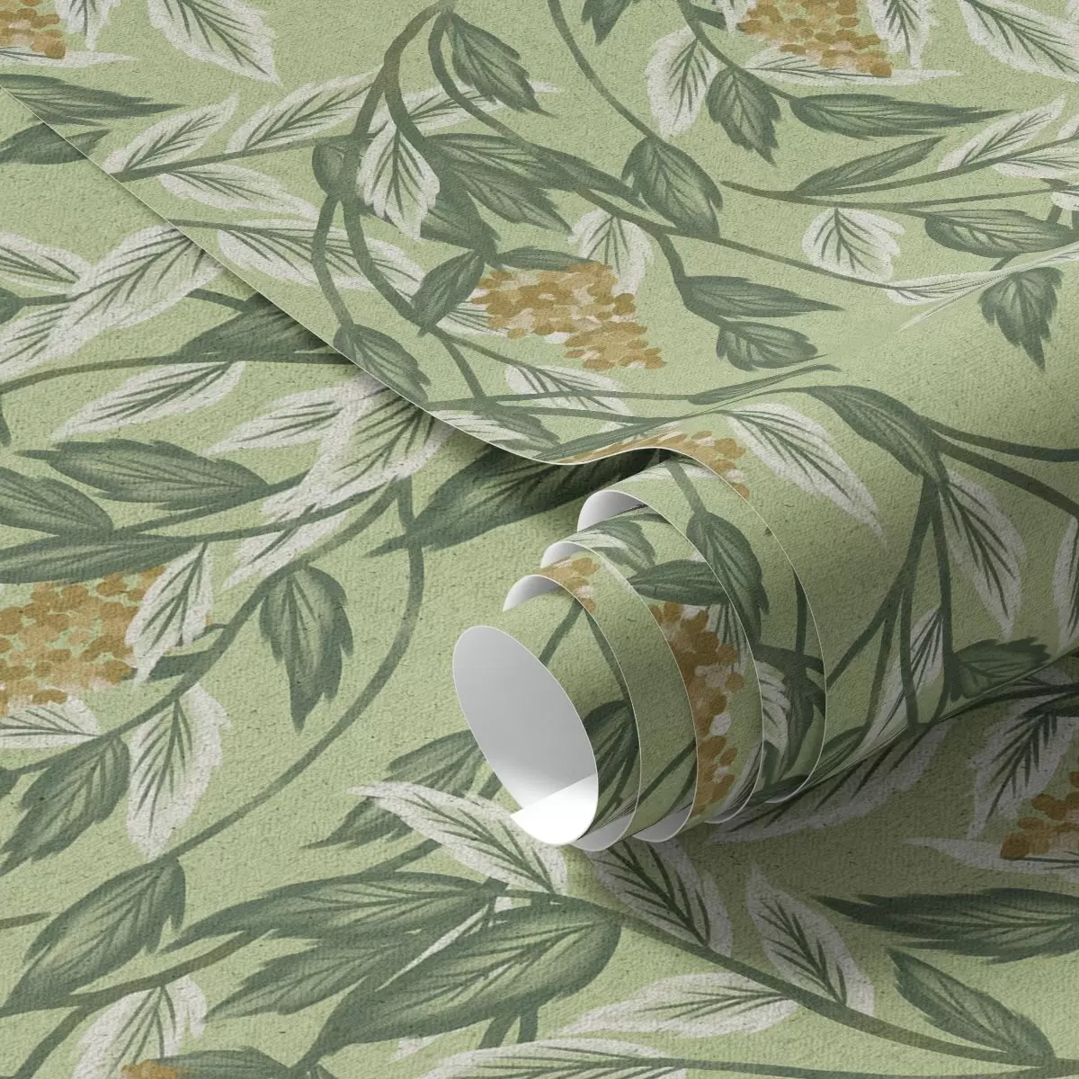 Papel tapiz Ramitas con racimos de bayas sobre fondo verde Nr. a00734