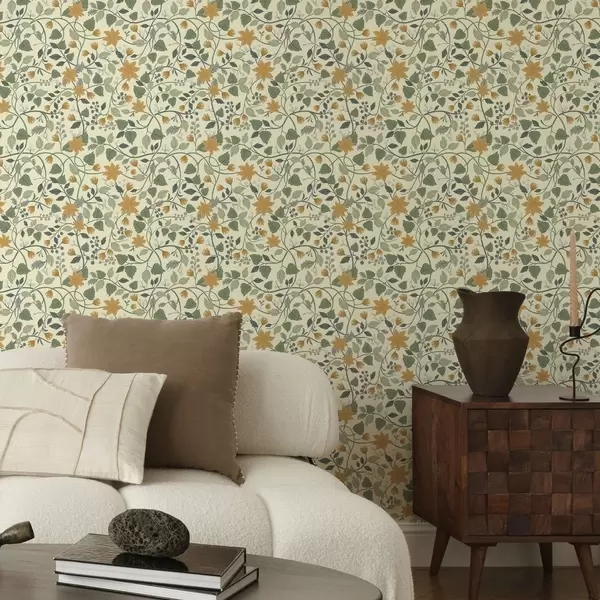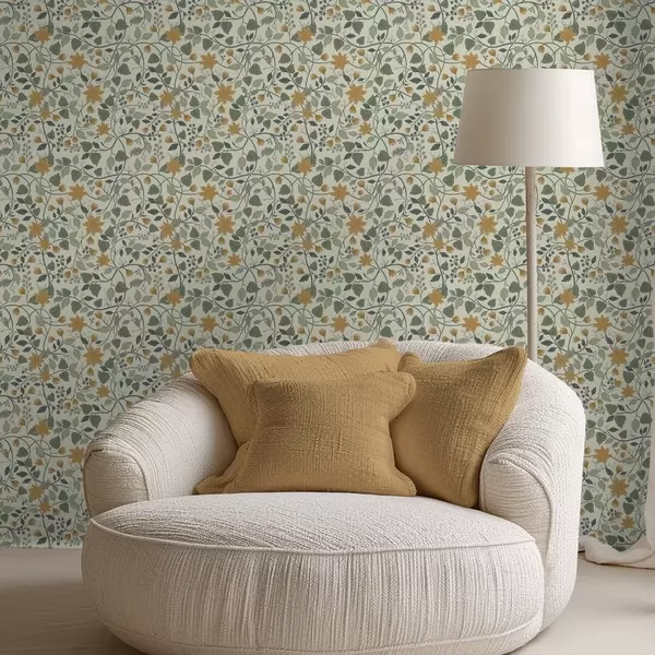 Papel tapiz Ramas trepadoras con flores amarillas y bayas Nr. a00750