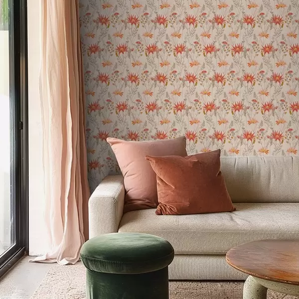 Papel tapiz Flores silvestres en tonos cálidos sobre fondo beige Nr. a00751