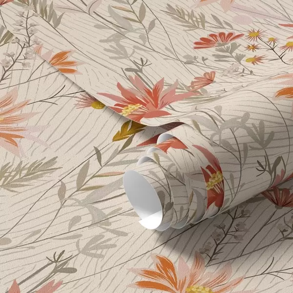 Papel pintado Flores silvestres en tonos cálidos sobre fondo beige a00751
