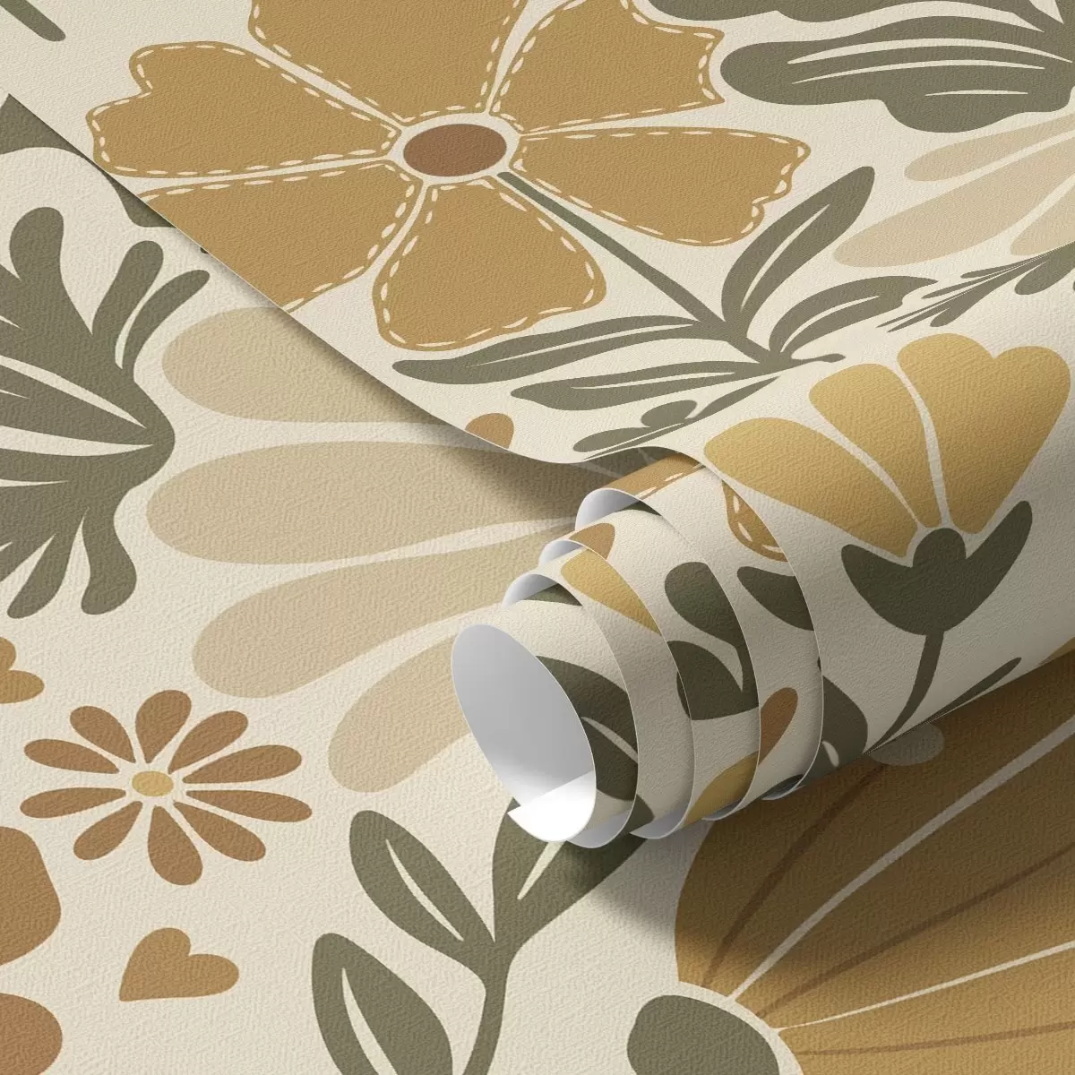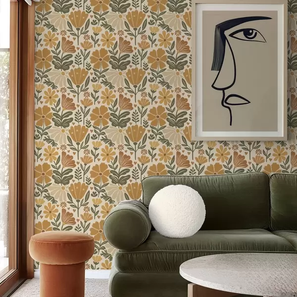 Papel tapiz Flores estilizadas en tonos cálidos con corazones Nr. a00752