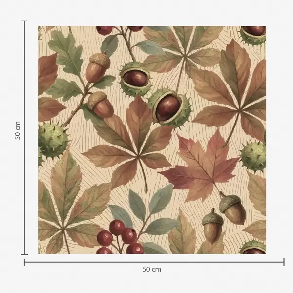 Papel tapiz Hojas otoñales, bellotas y bayas sobre fondo beige Nr. a00754