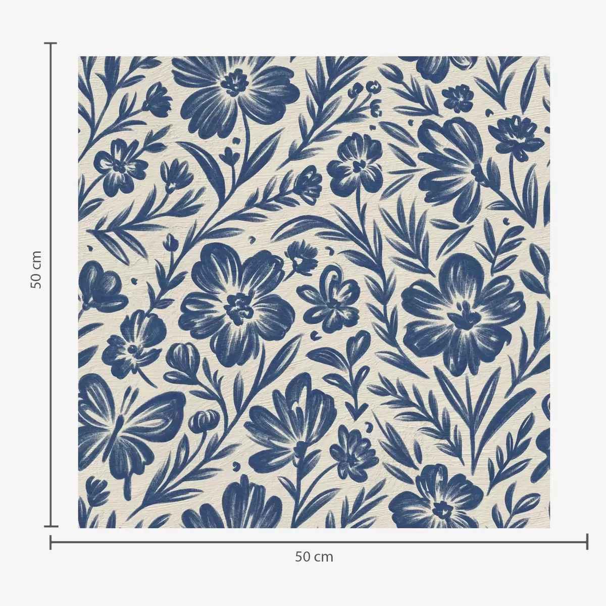 Papel tapiz Adorno floral azul con mariposas Nr. a00758