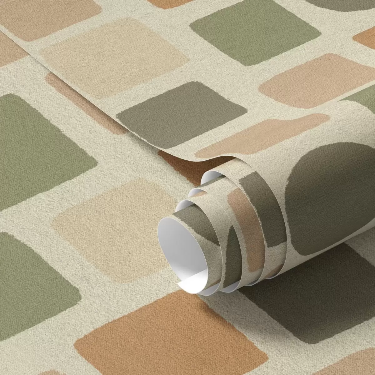 Papel tapiz Patrón geométrico de cuadrados y círculos en tonos cálidos Nr. a00759
