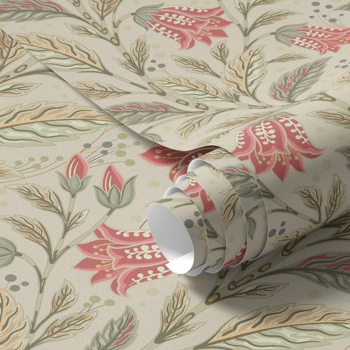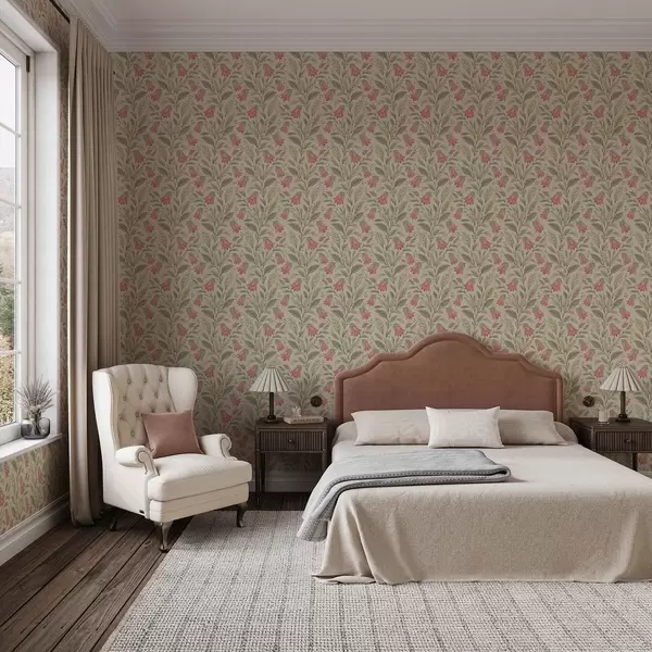 Papel tapiz Pequeñas flores con forma de campana en tonos rosa y verde Nr. a00760