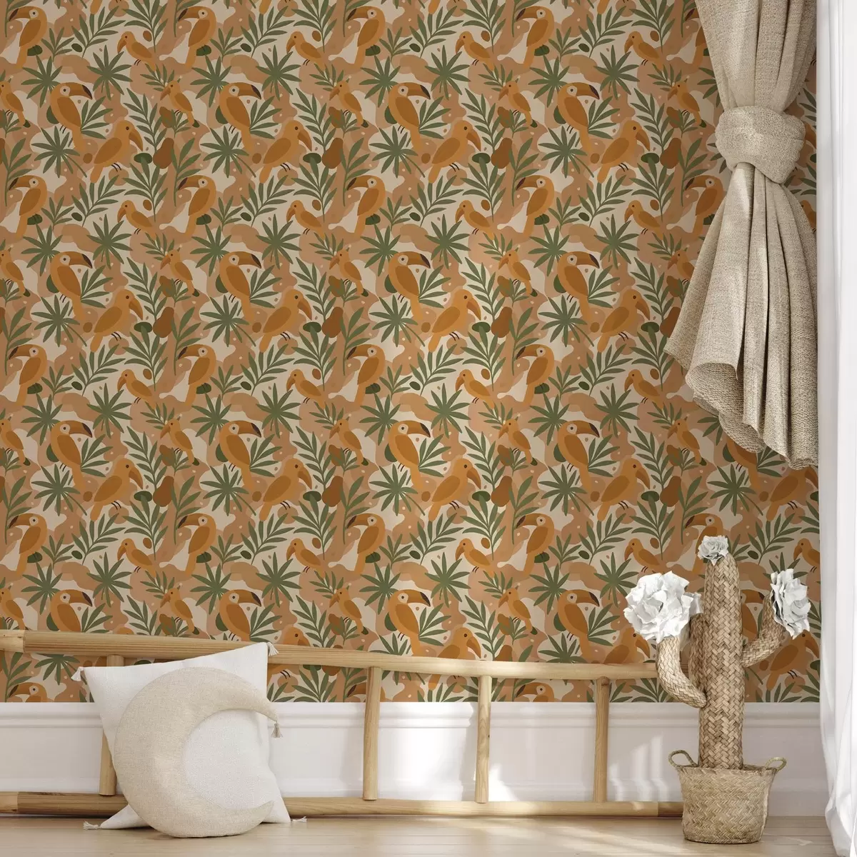 Papel tapiz Tucanes estilizados entre hojas de palmera Nr. a00762