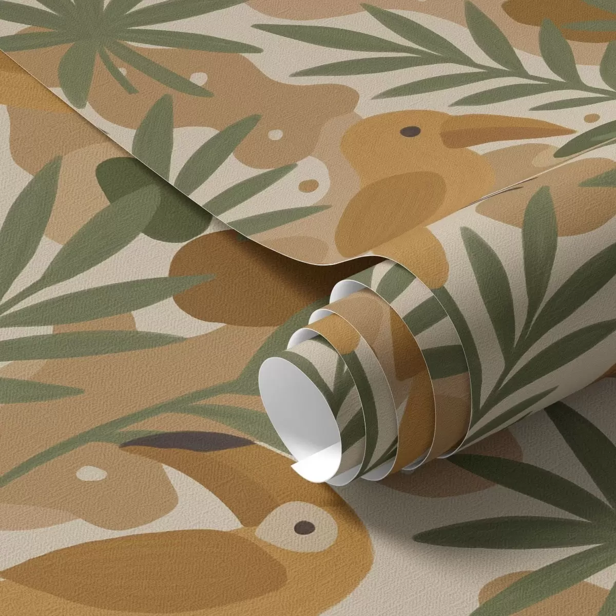 Papel tapiz Tucanes estilizados entre hojas de palmera Nr. a00762