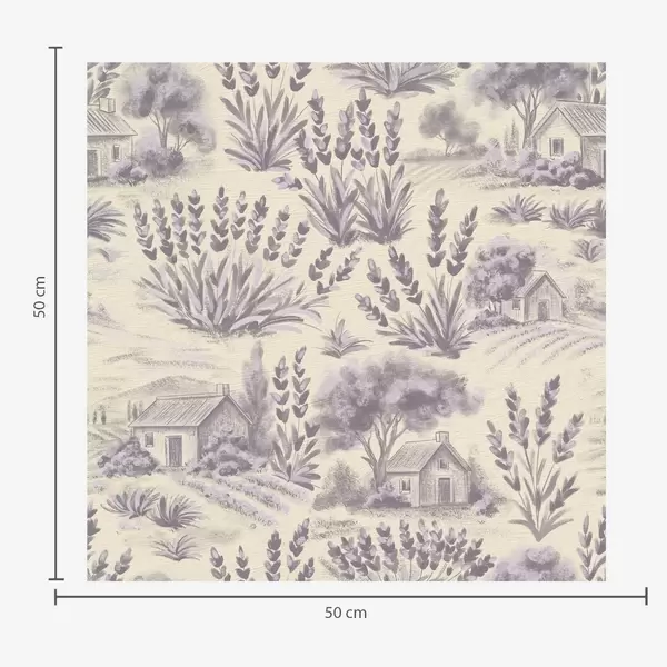 Papel tapiz Campos de lavanda y casas en tonos pastel Nr. a00765