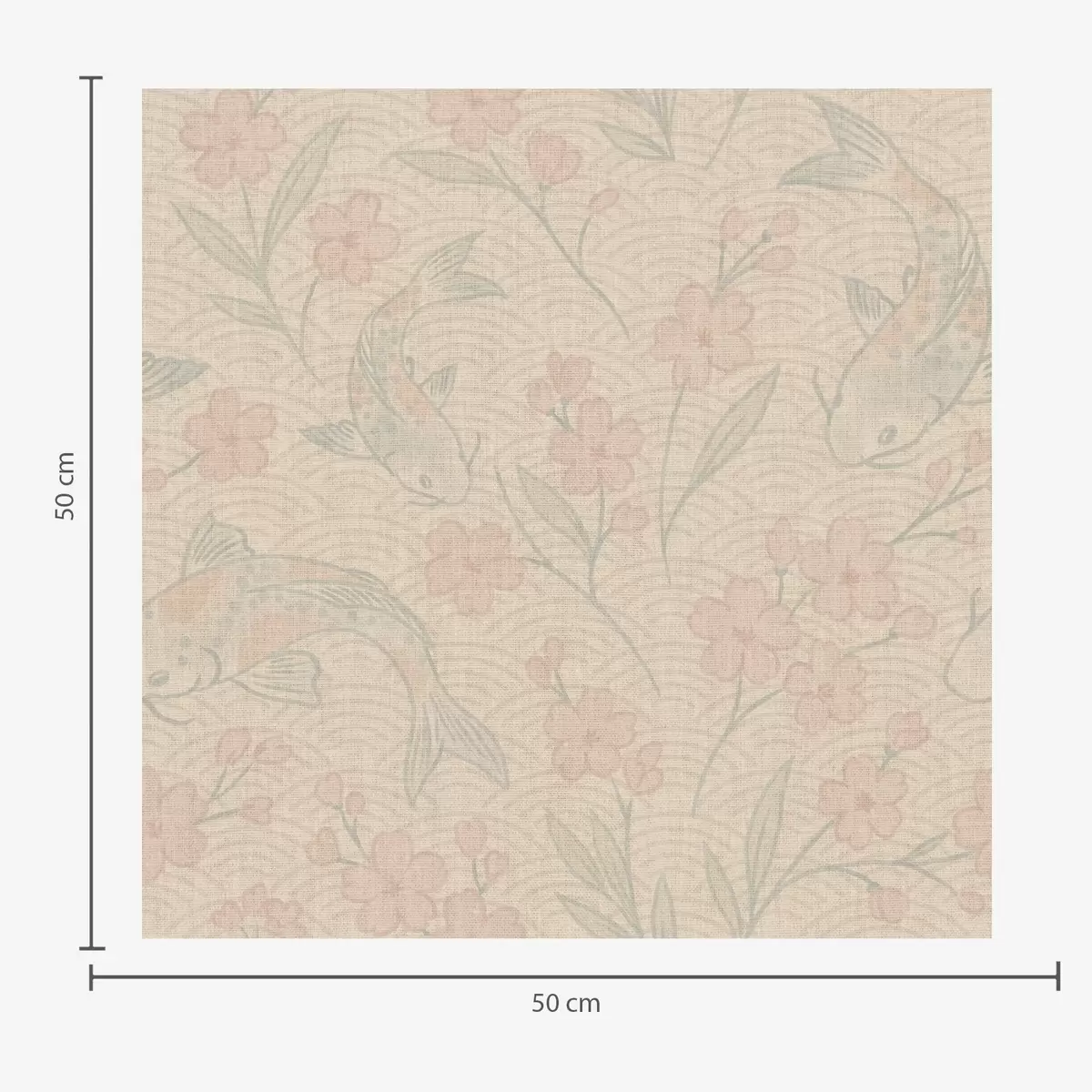 Papel tapiz Carpas entre flores en suaves tonos beige y rosa Nr. a00766