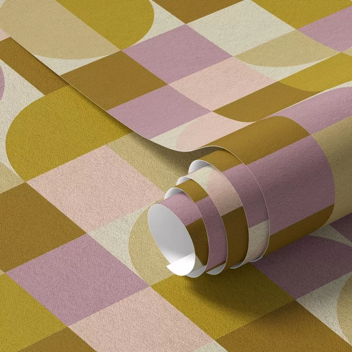 Papel tapiz Geometría modular en tonos rosa y mostaza. Nr. a00770v1