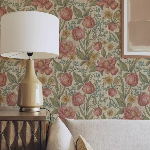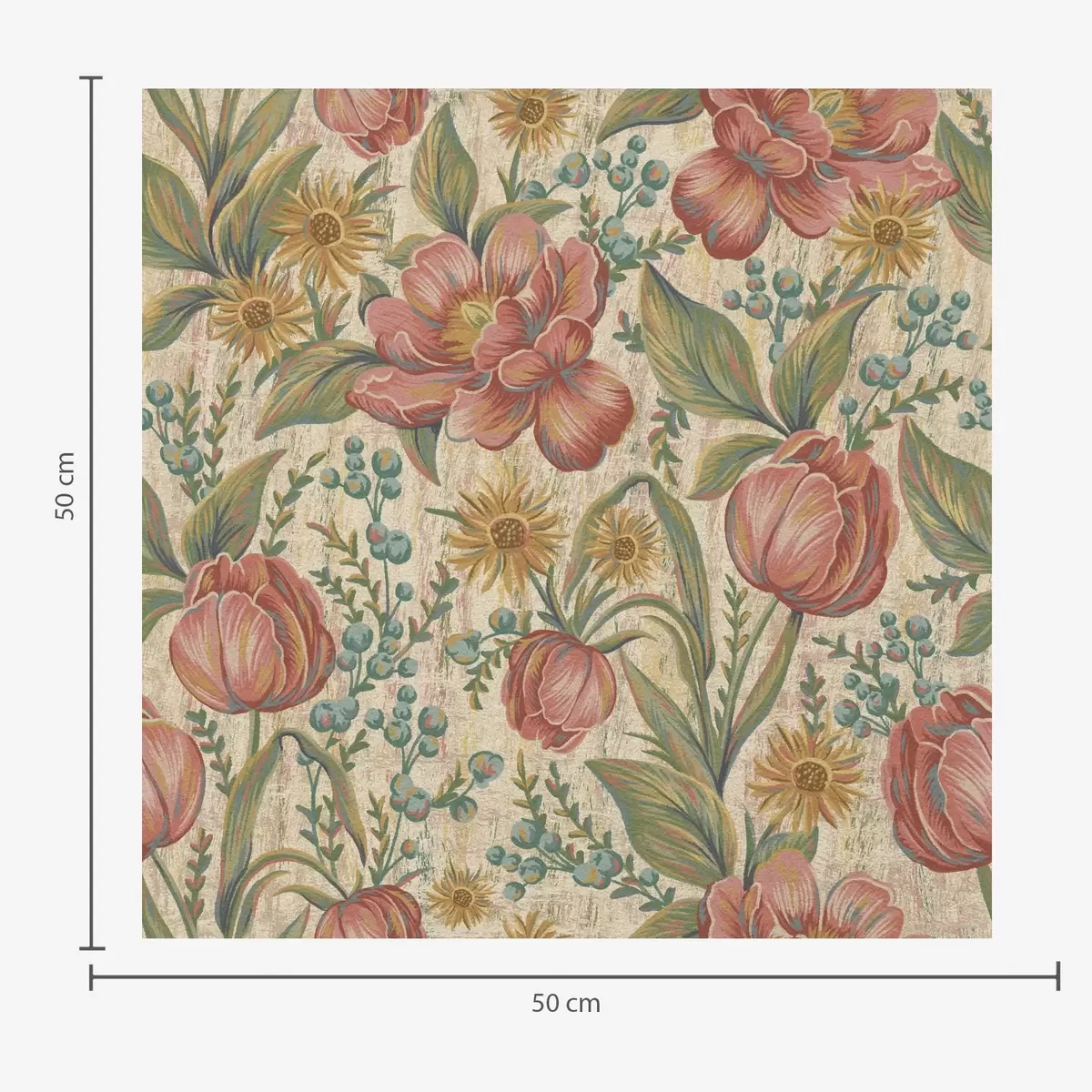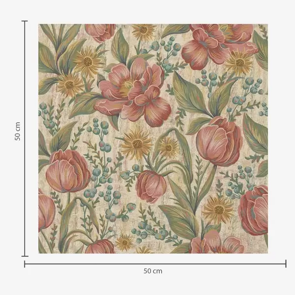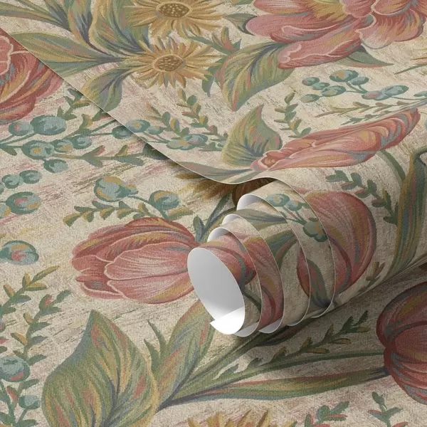 Papel tapiz Tulipanes y ásteres vintage, fondo crema texturizado Nr. a00773