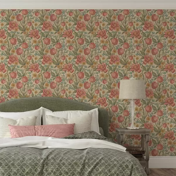 Papel tapiz Tulipanes y ásteres vintage, fondo crema texturizado Nr. a00773
