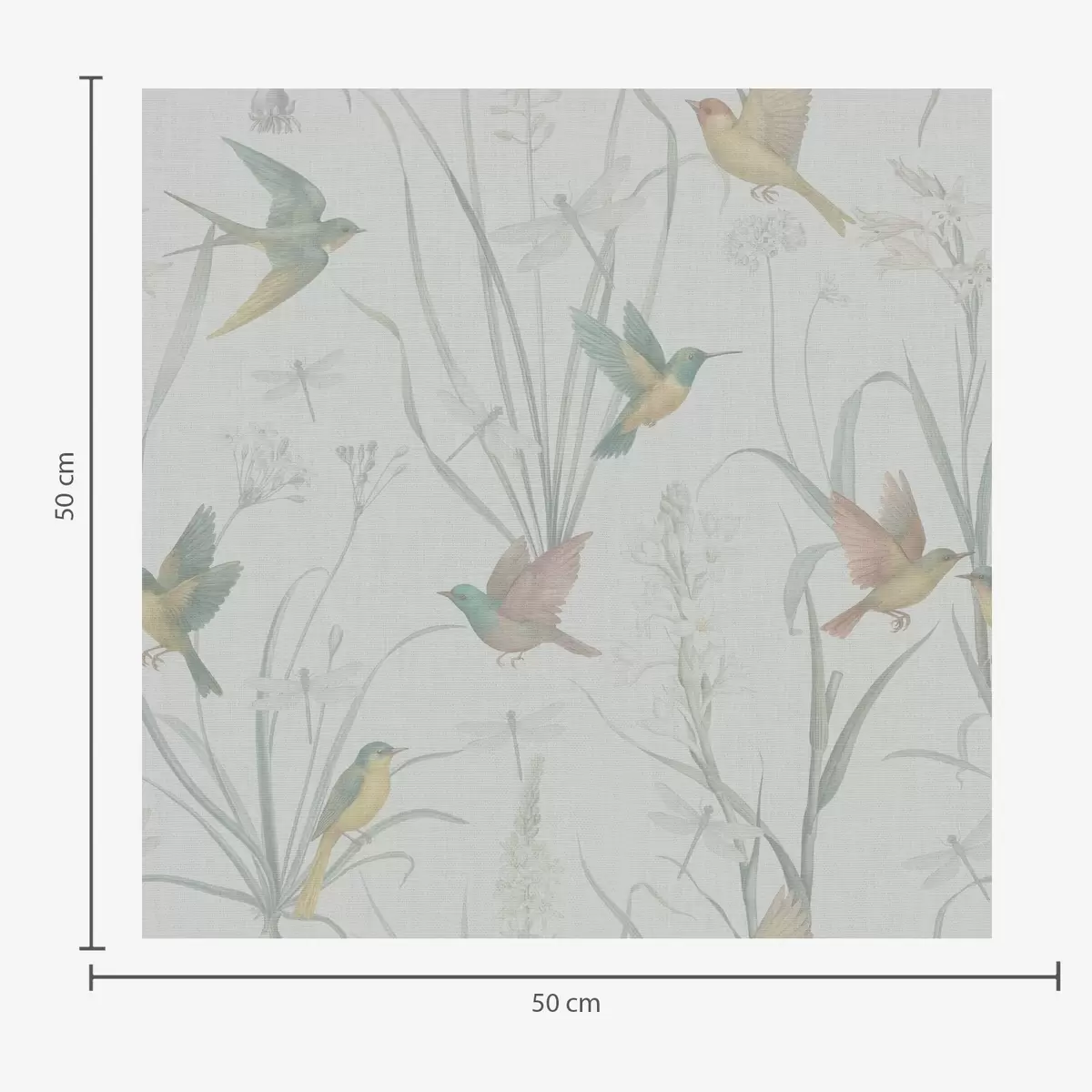 Papel pintado Pájaros entre la hierba del prado sobre un fondo gris claro. a00776v1
