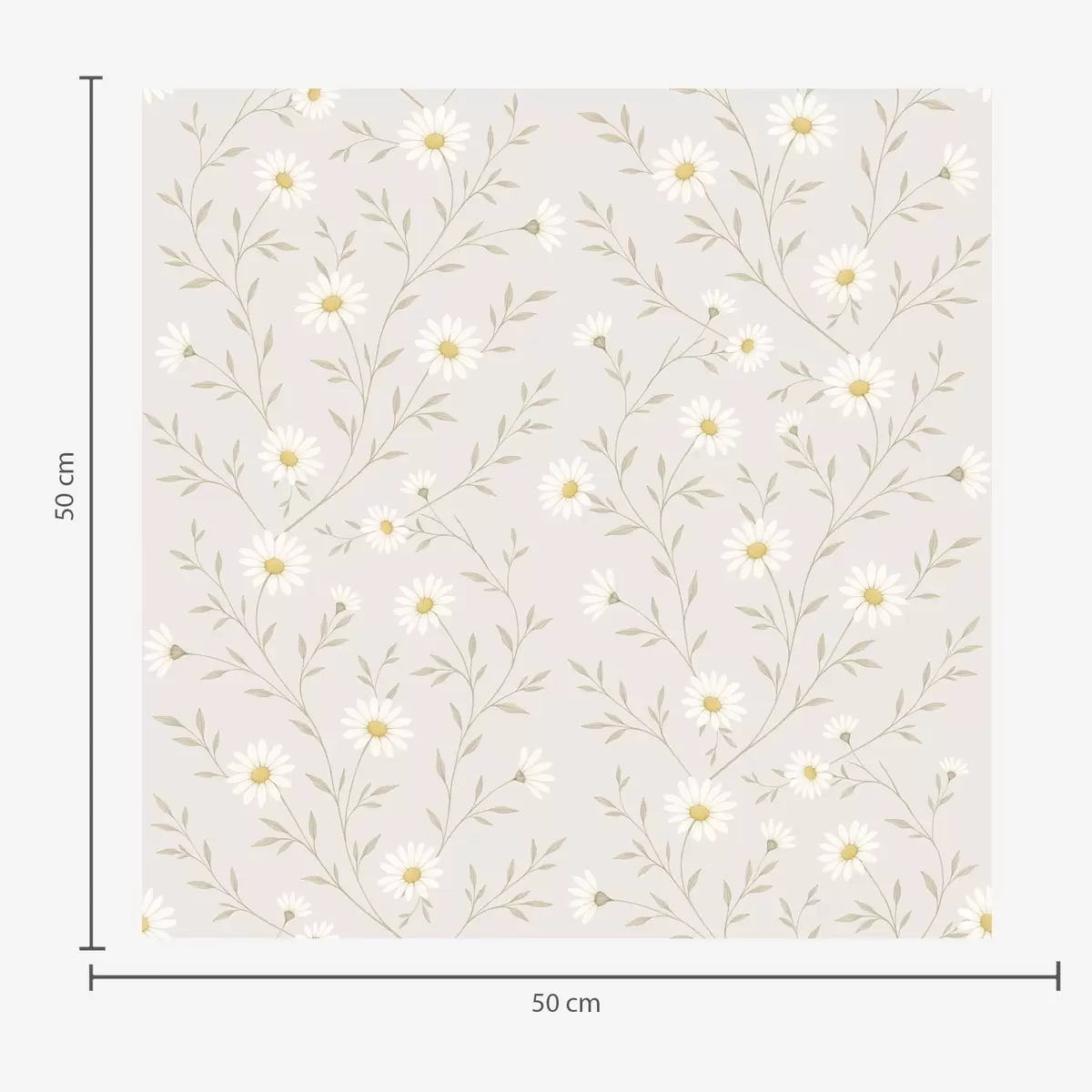 Papel tapiz Pequeñas margaritas en ramitas, beige cálido Nr. a00777