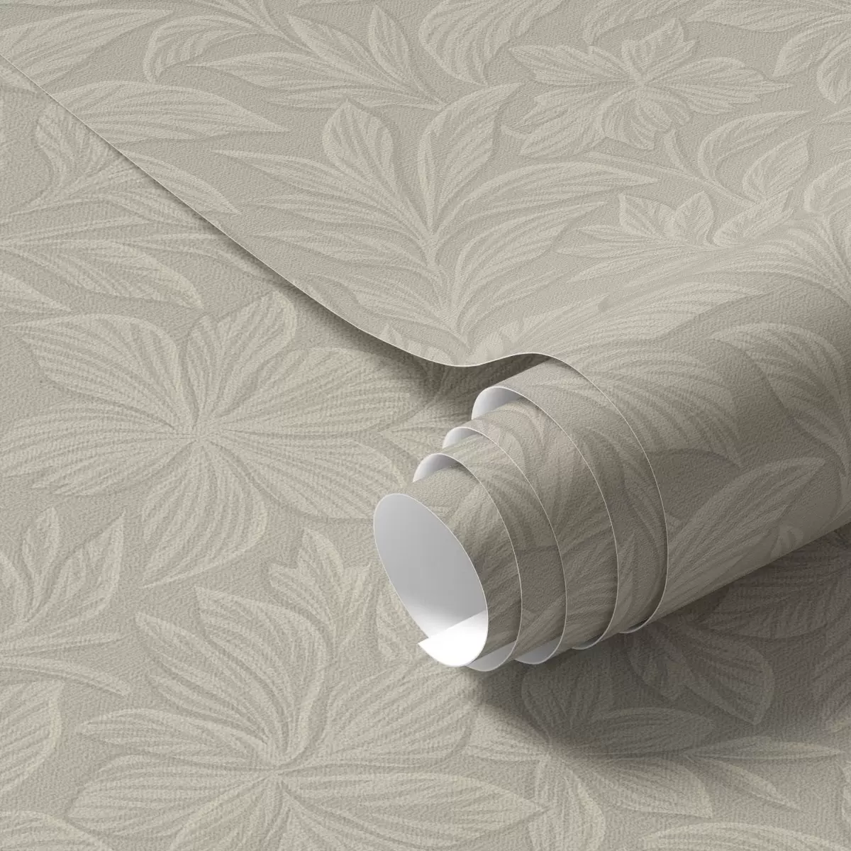 Papel tapiz Siluetas de hojas en relieve, cálido color topo Nr. a00781