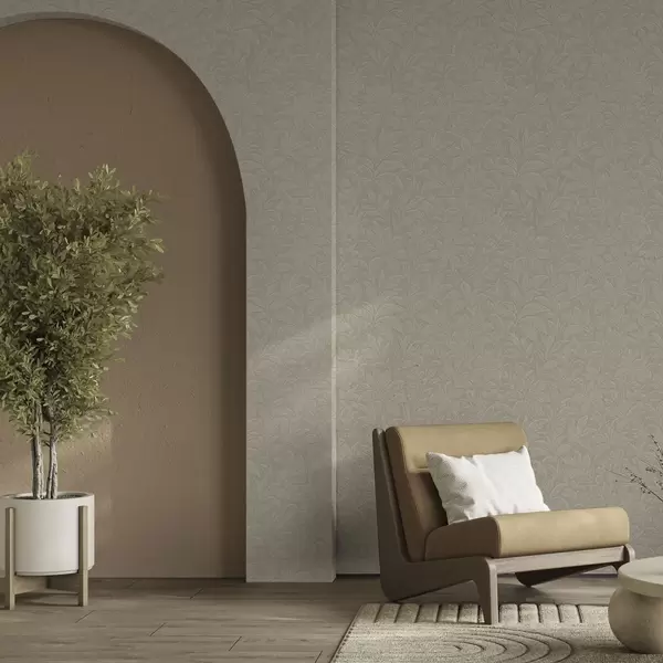 Papel tapiz Siluetas de hojas en relieve, cálido color topo Nr. a00781