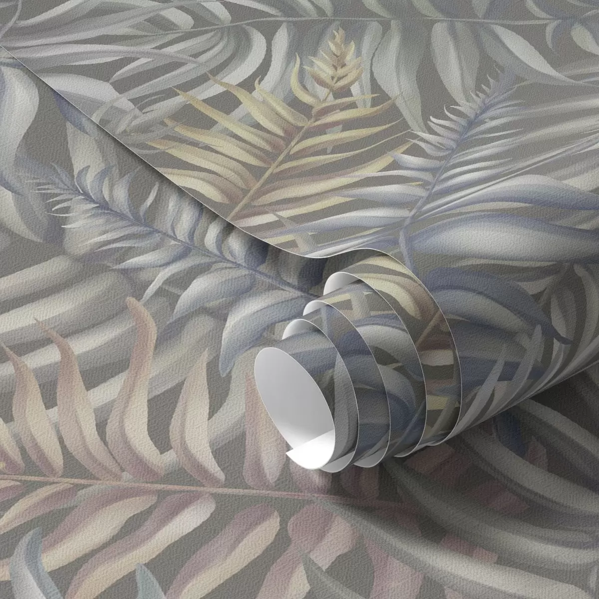 Papel tapiz Hojas de palmera en capas en tonos apagados Nr. a00789
