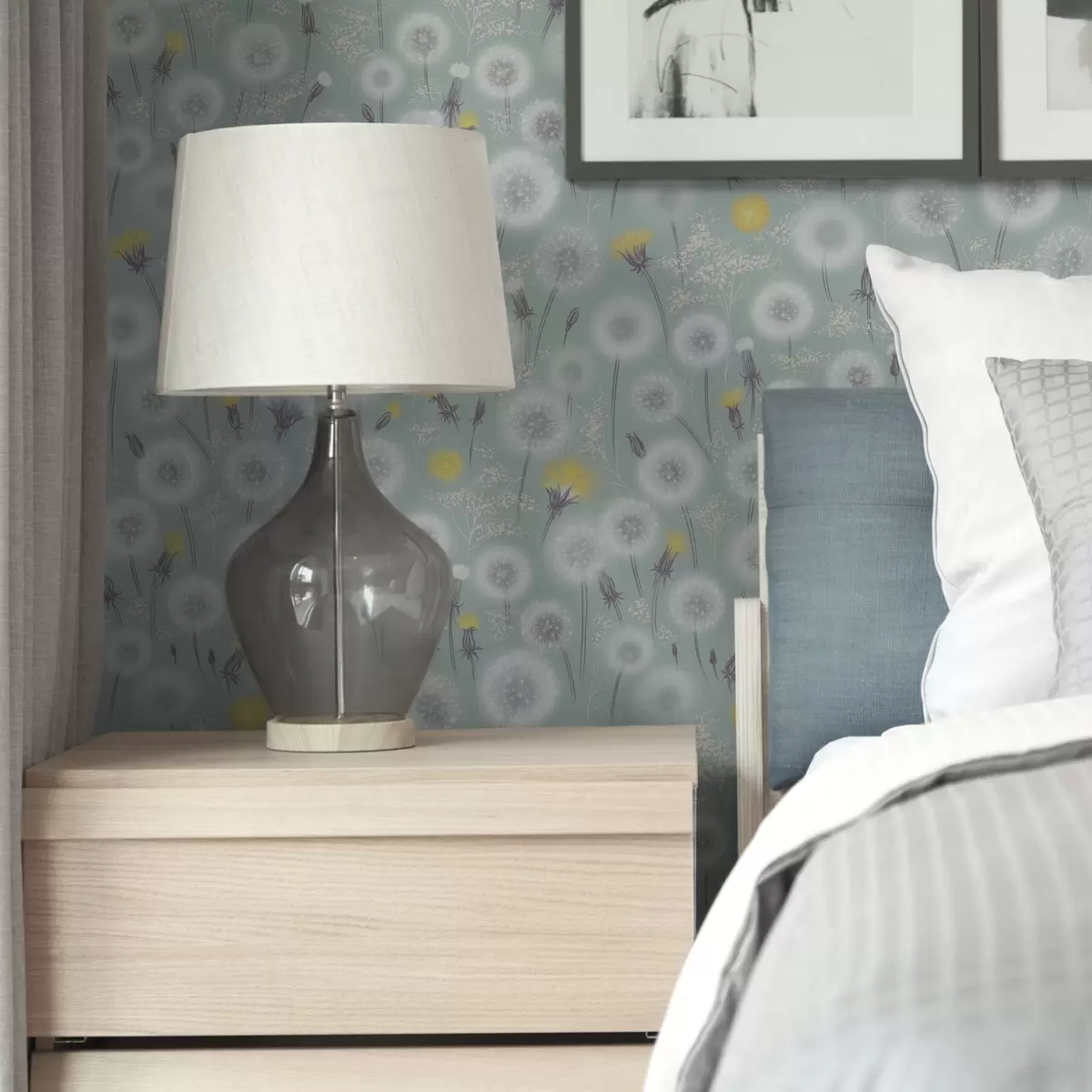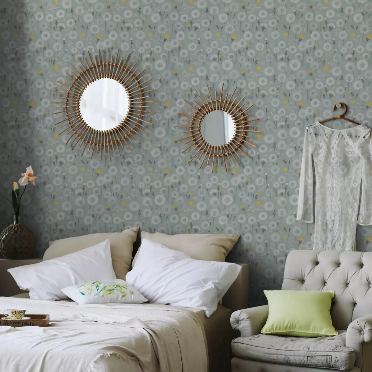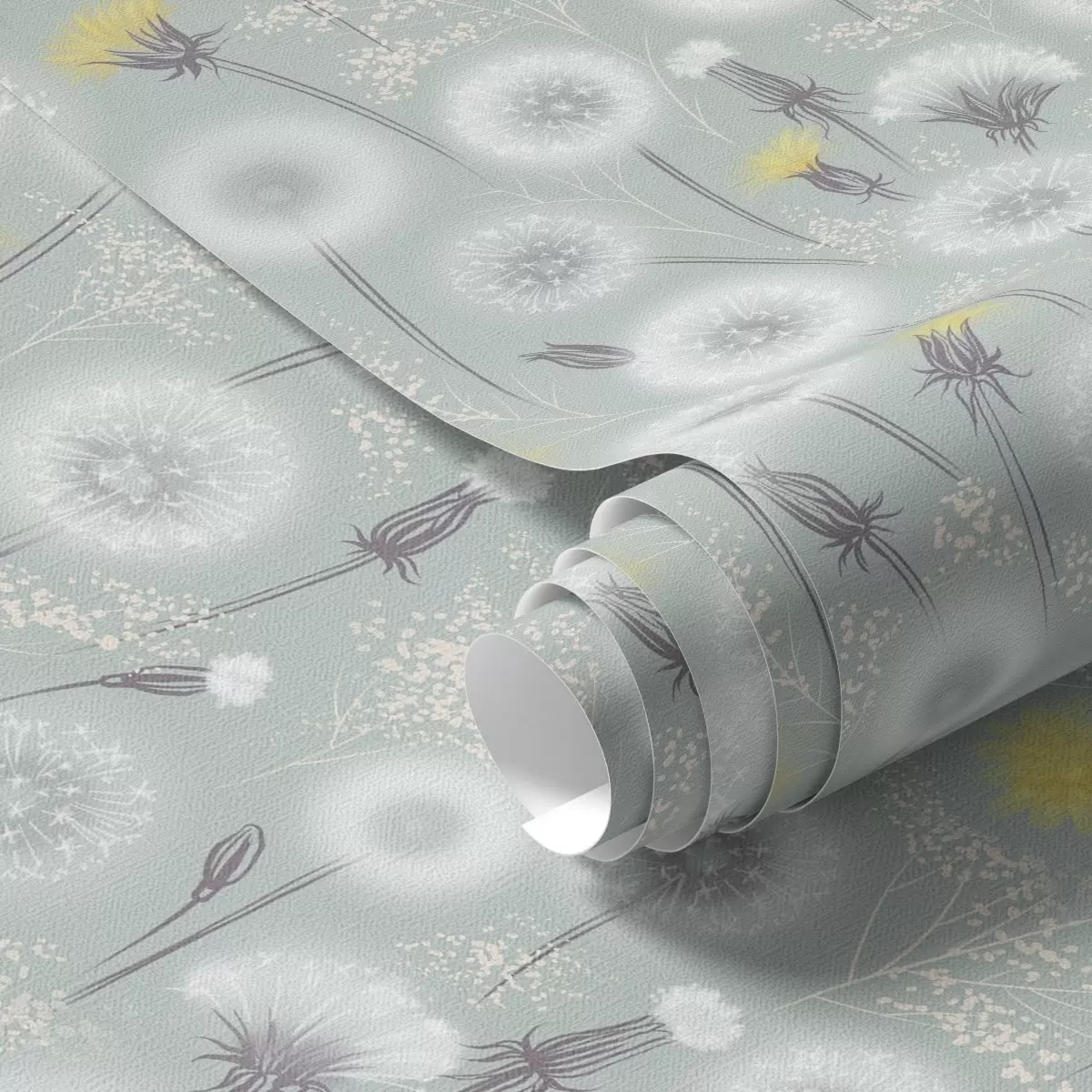 Papel tapiz Dientes de león esponjosos y semillas sobre un fondo de menta Nr. a00790