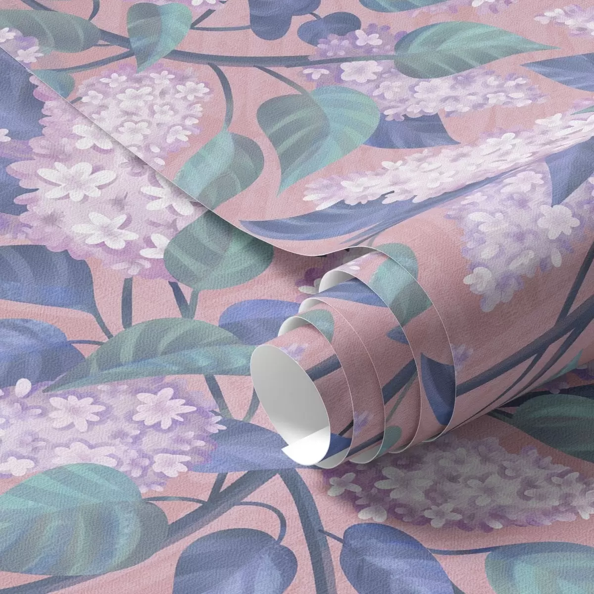 Papel tapiz Delicadas flores lilas sobre fondo rosa, ambiente primaveral Nr. a00797