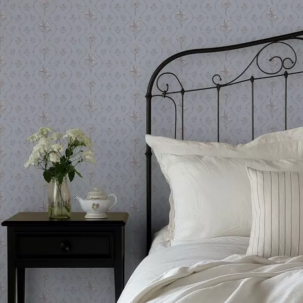Papel tapiz Pequeñas flores y cintas en tonos azul pálido Nr. a00808v1