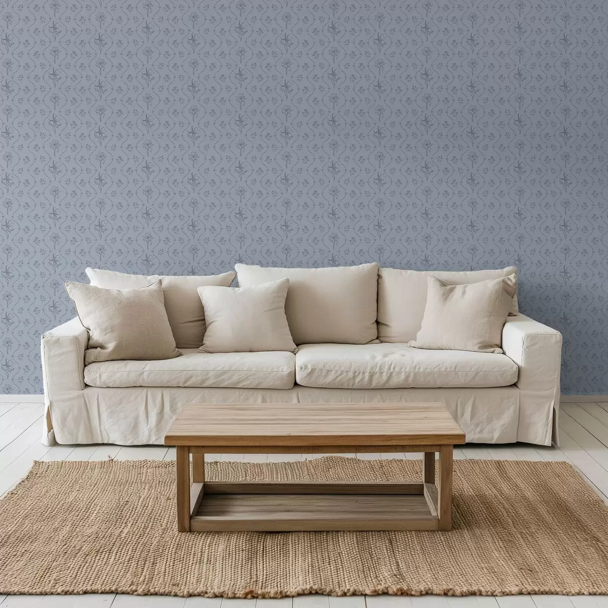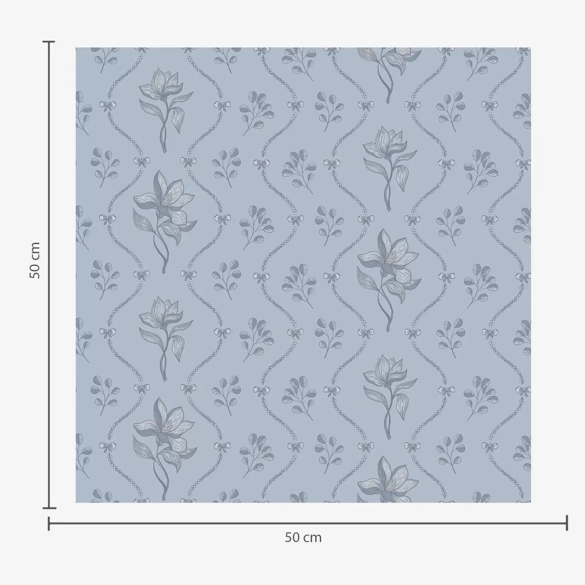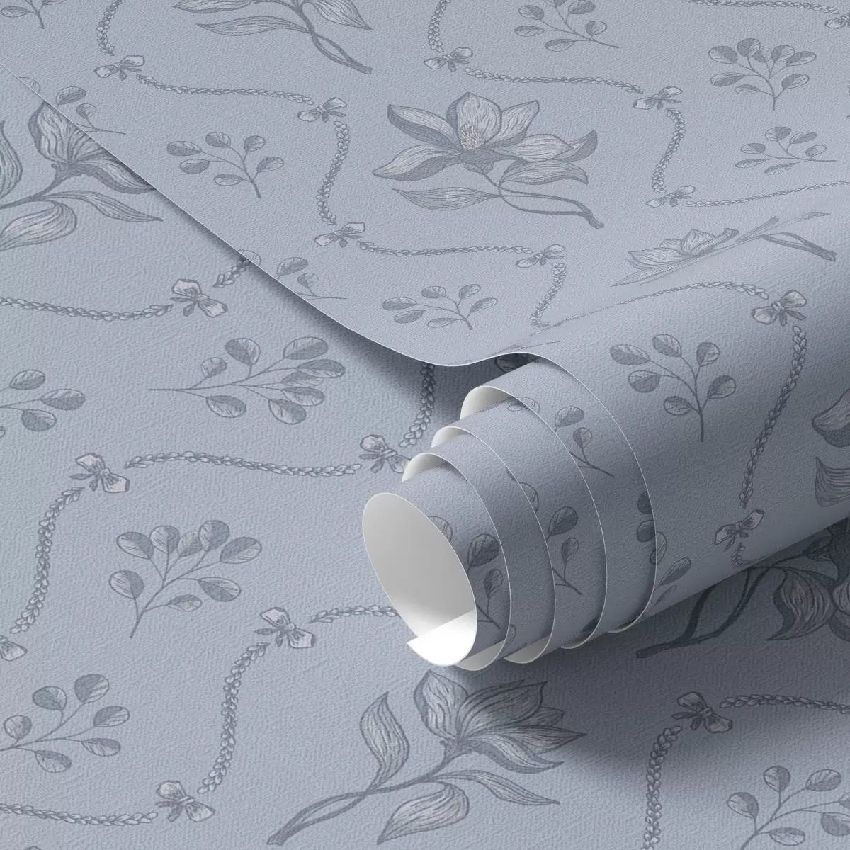 Papel tapiz Pequeñas flores y cintas en tonos gris azulado Nr. a00808v2