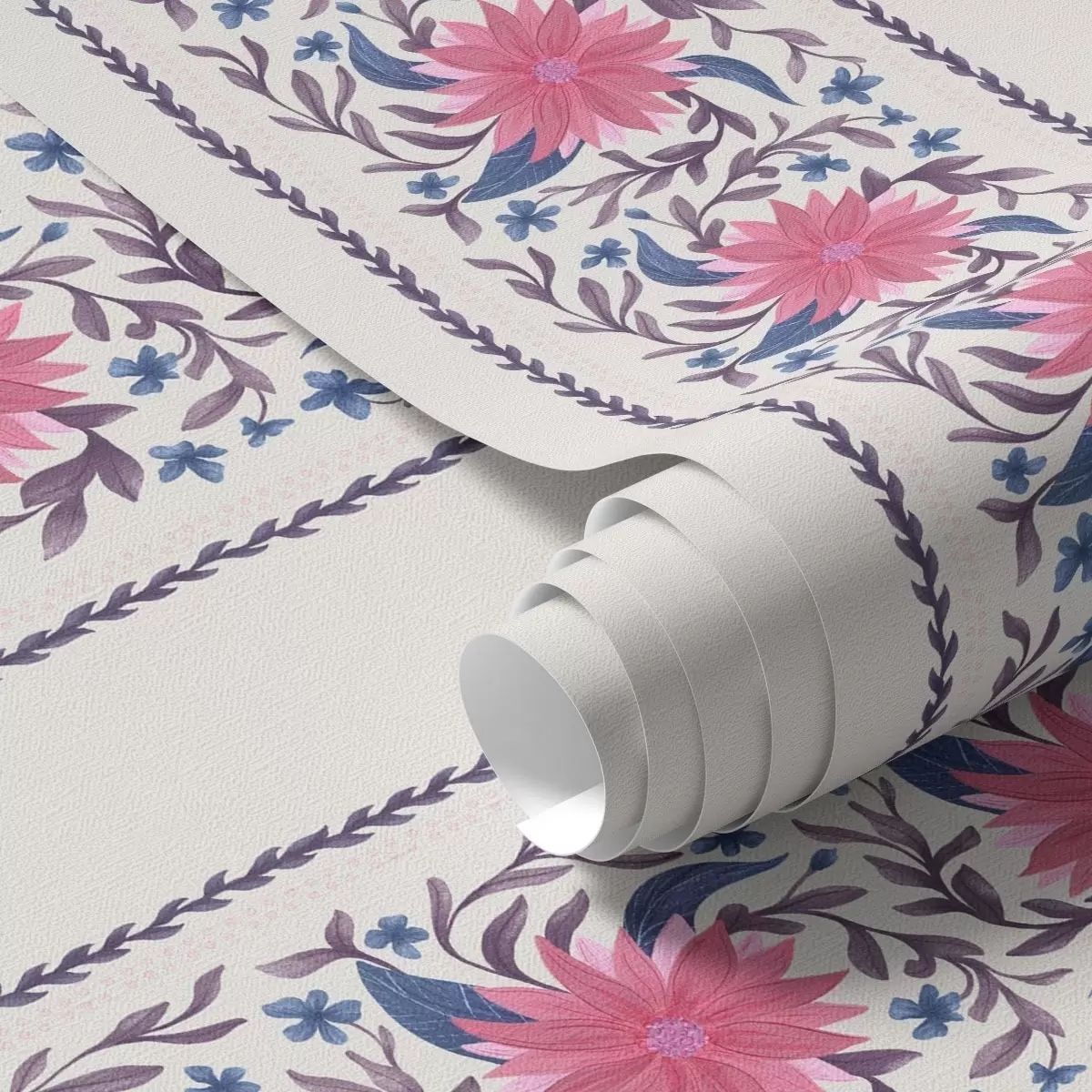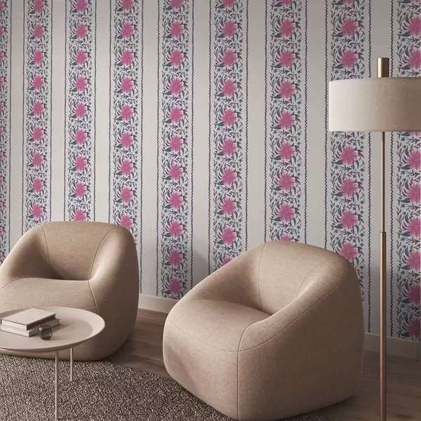 Papel tapiz Rayas florales verticales en tonos rosa-morado Nr. a00810