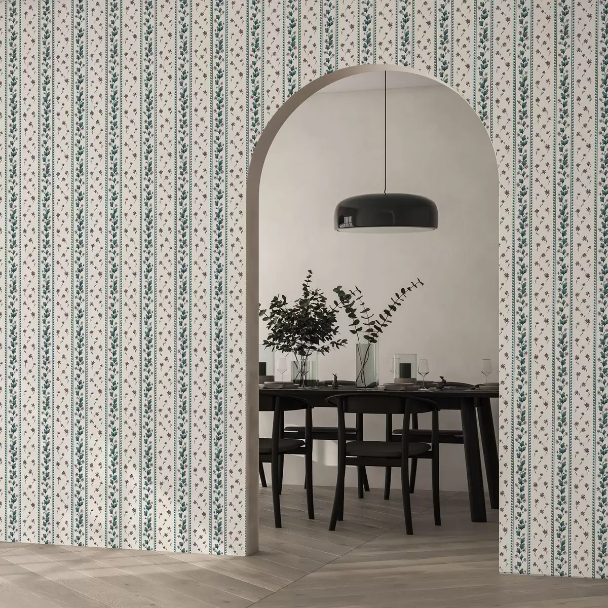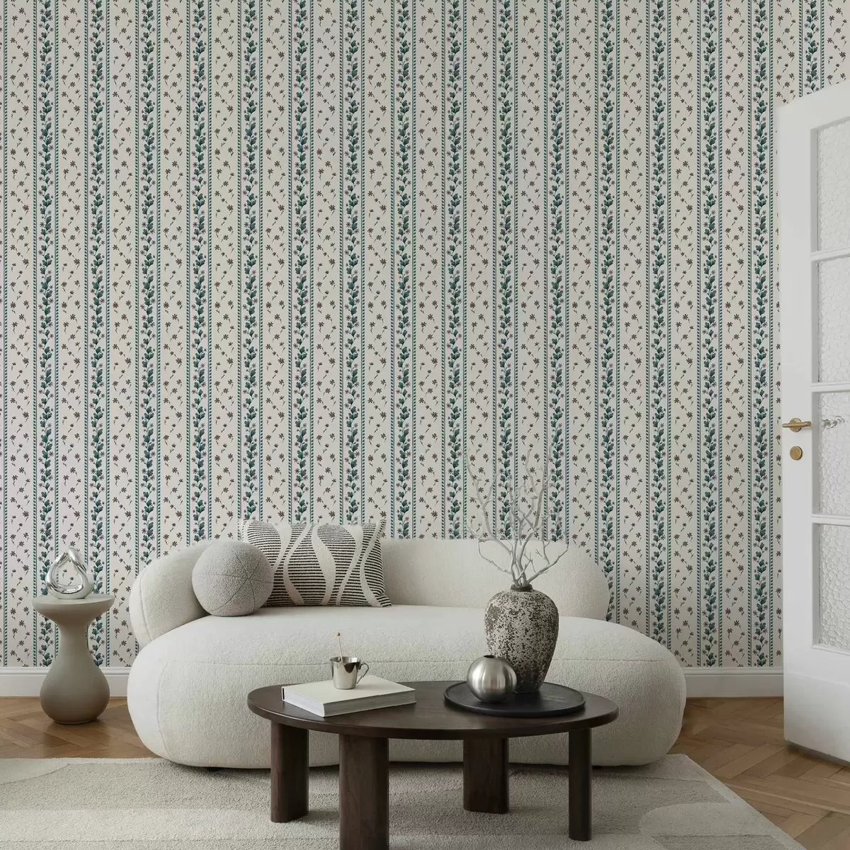 Papel tapiz Rayas florales verticales en tonos azul y marrón Nr. a00811