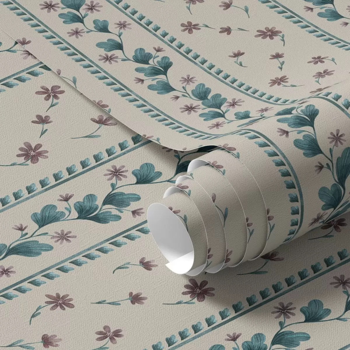 Papel tapiz Rayas florales verticales en tonos azul y marrón Nr. a00811v1