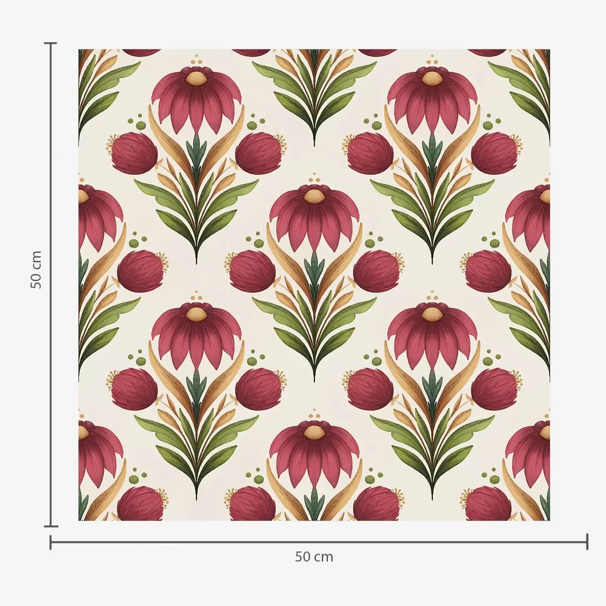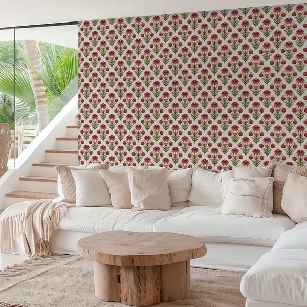 Papel tapiz Adorno floral simétrico en intensos tonos rojos y verdes Nr. a00812v4