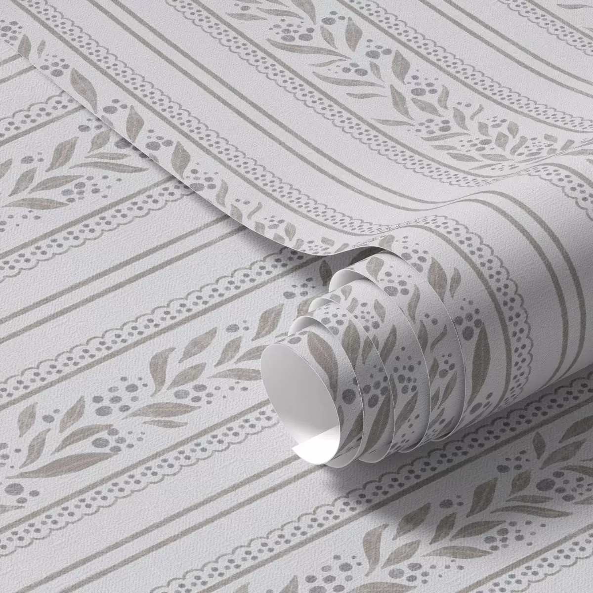 Papel tapiz Rayas con encaje y ramitas en blanco frío Nr. a00814v1