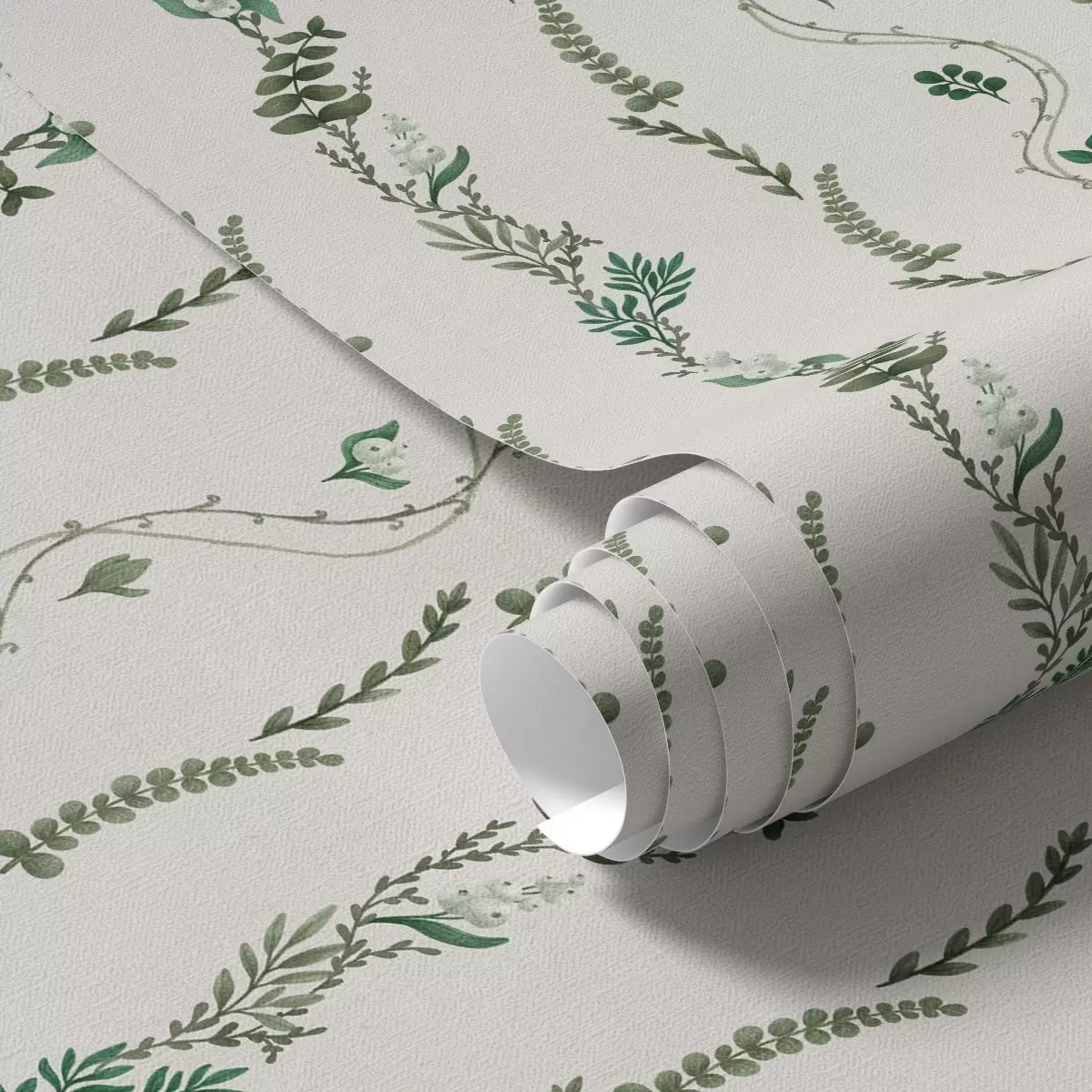 Papel tapiz Delgadas lianas verticales de eucalipto sobre fondo beige Nr. a00817