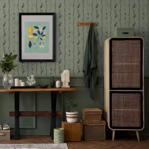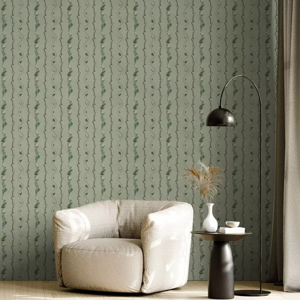 Papel tapiz Enredaderas verticales y ramitas en verde apagado Nr. a00817v1
