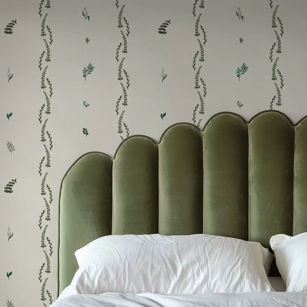 Papel tapiz Brotes verdes dispersos en un ritmo vertical, fondo crema. Nr. a00818