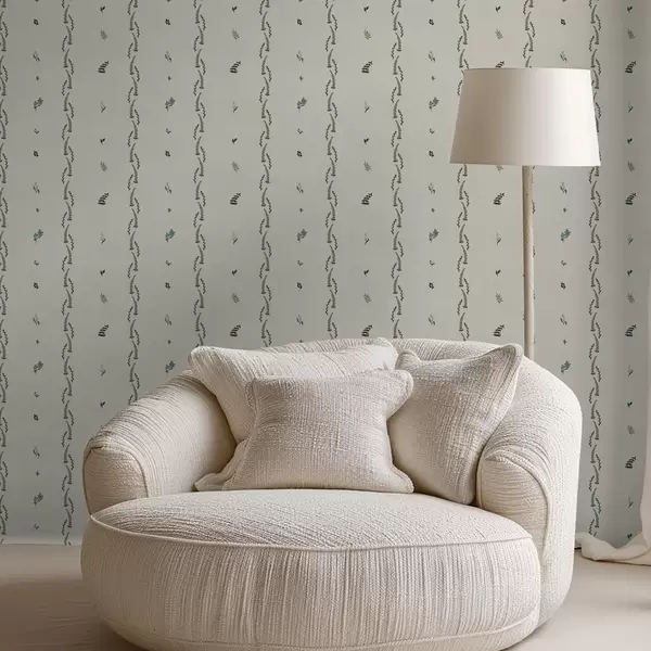 Papel tapiz Brotes verdes dispersos en un ritmo vertical, fondo crema. Nr. a00818