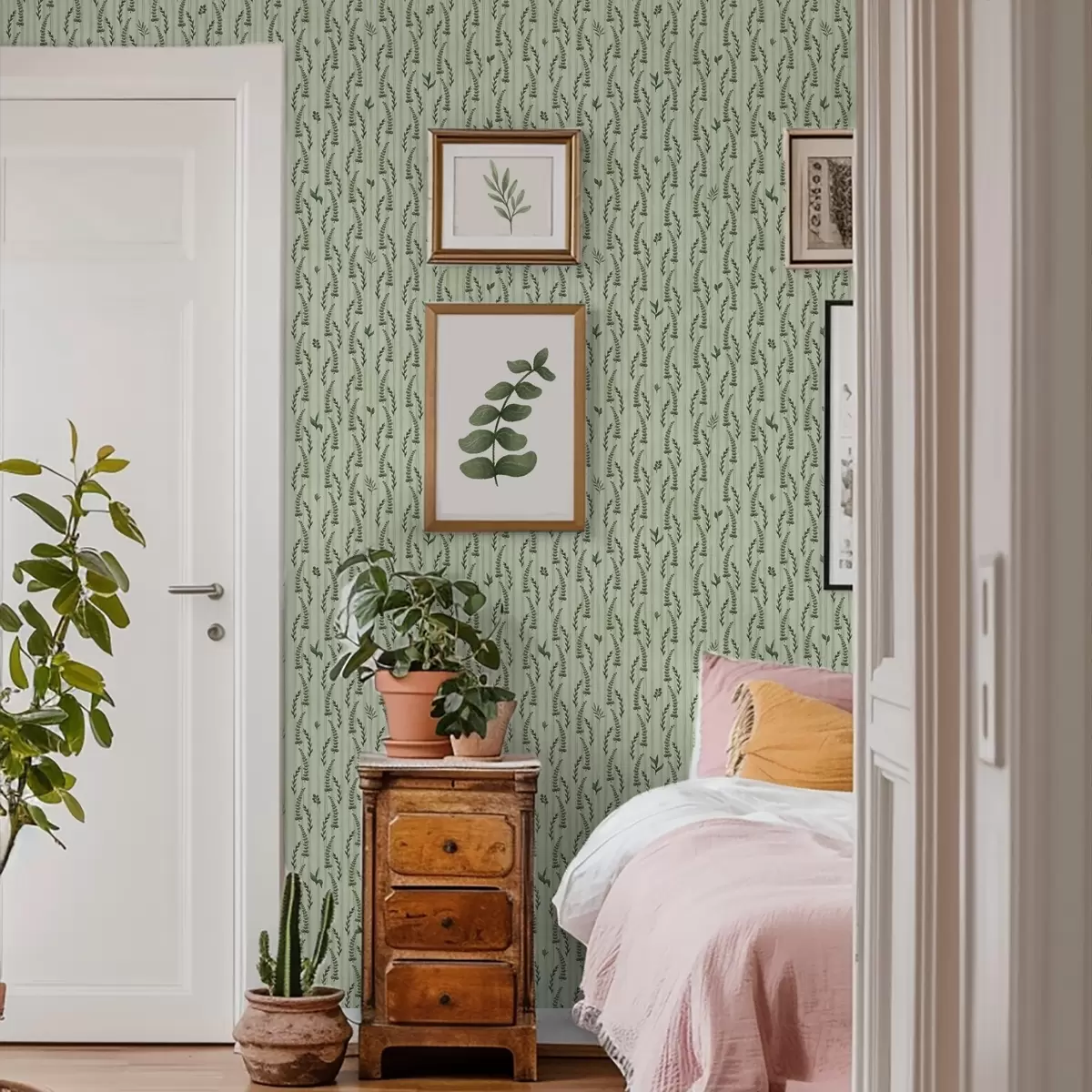 Papel tapiz Hierbas verdes densas y brotes de menta con rayas Nr. a00819