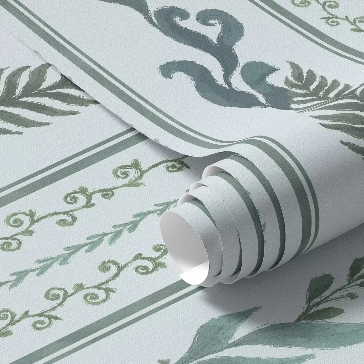 Papel tapiz Rayas con ramificaciones y rizos en azul claro frío Nr. a00823v1