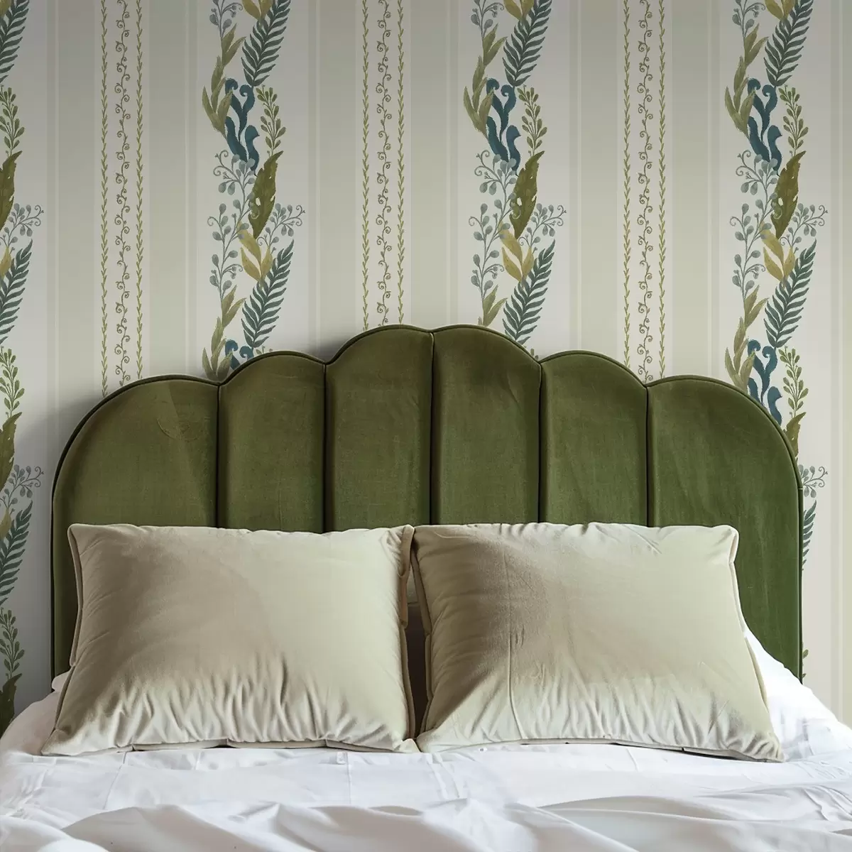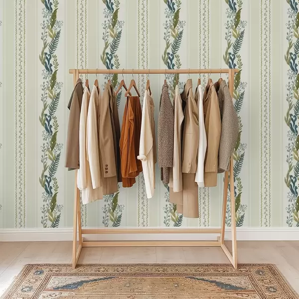Papel tapiz Rayas anchas con ramas pictóricas en tonos azul oliva Nr. a00825