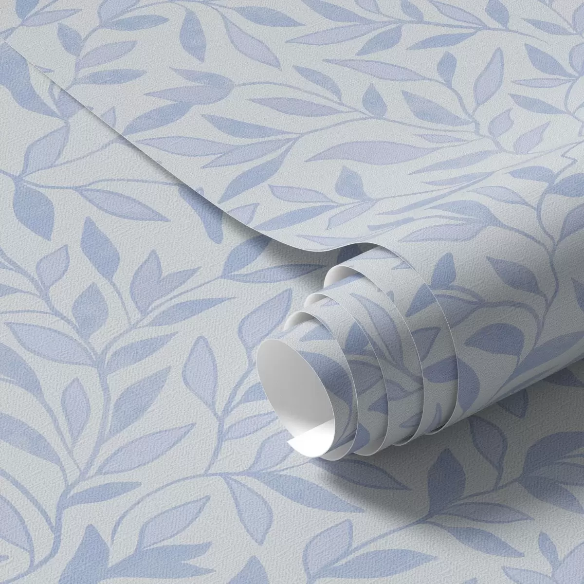 Papel tapiz Ramitas azules con hojas en azul claro Nr. a00842