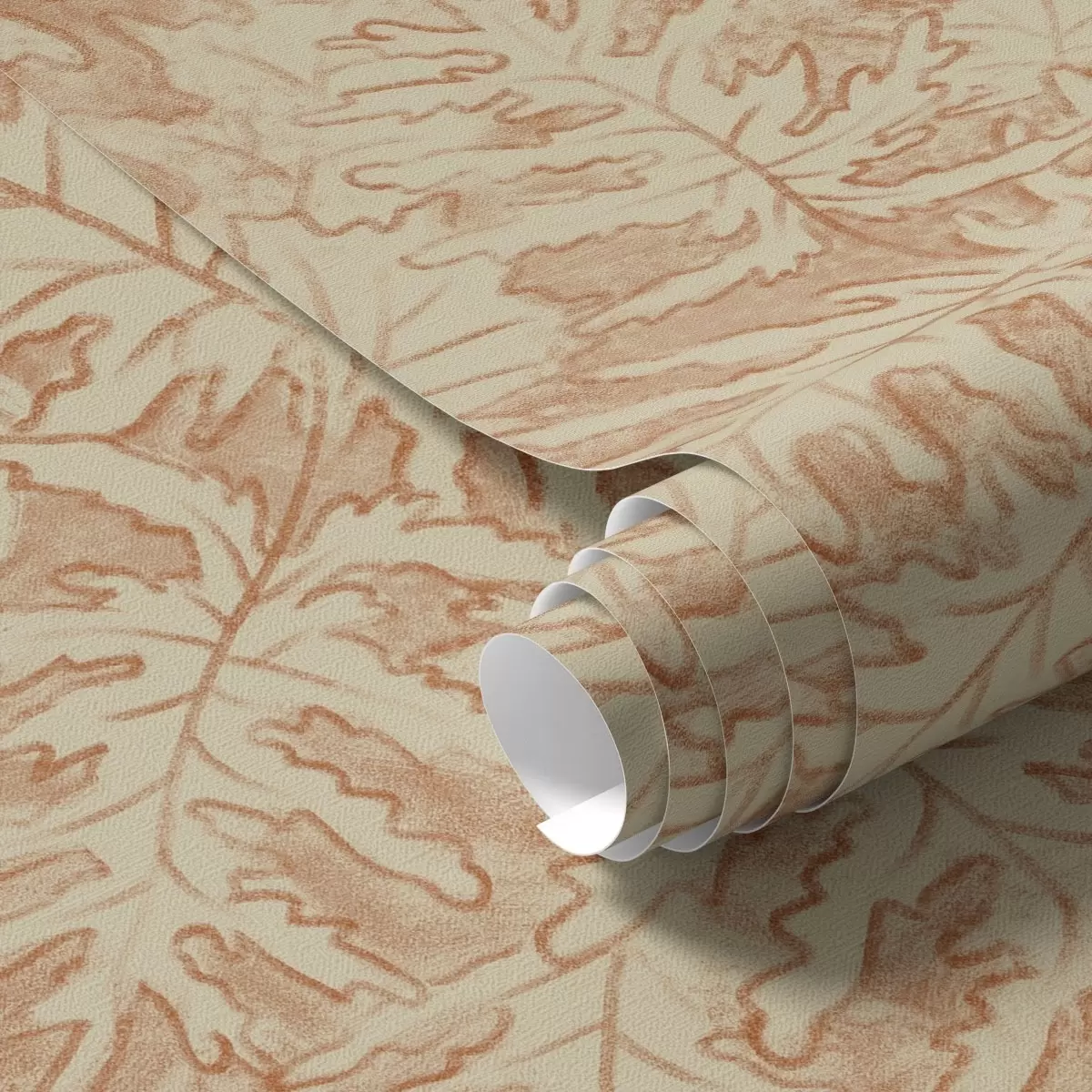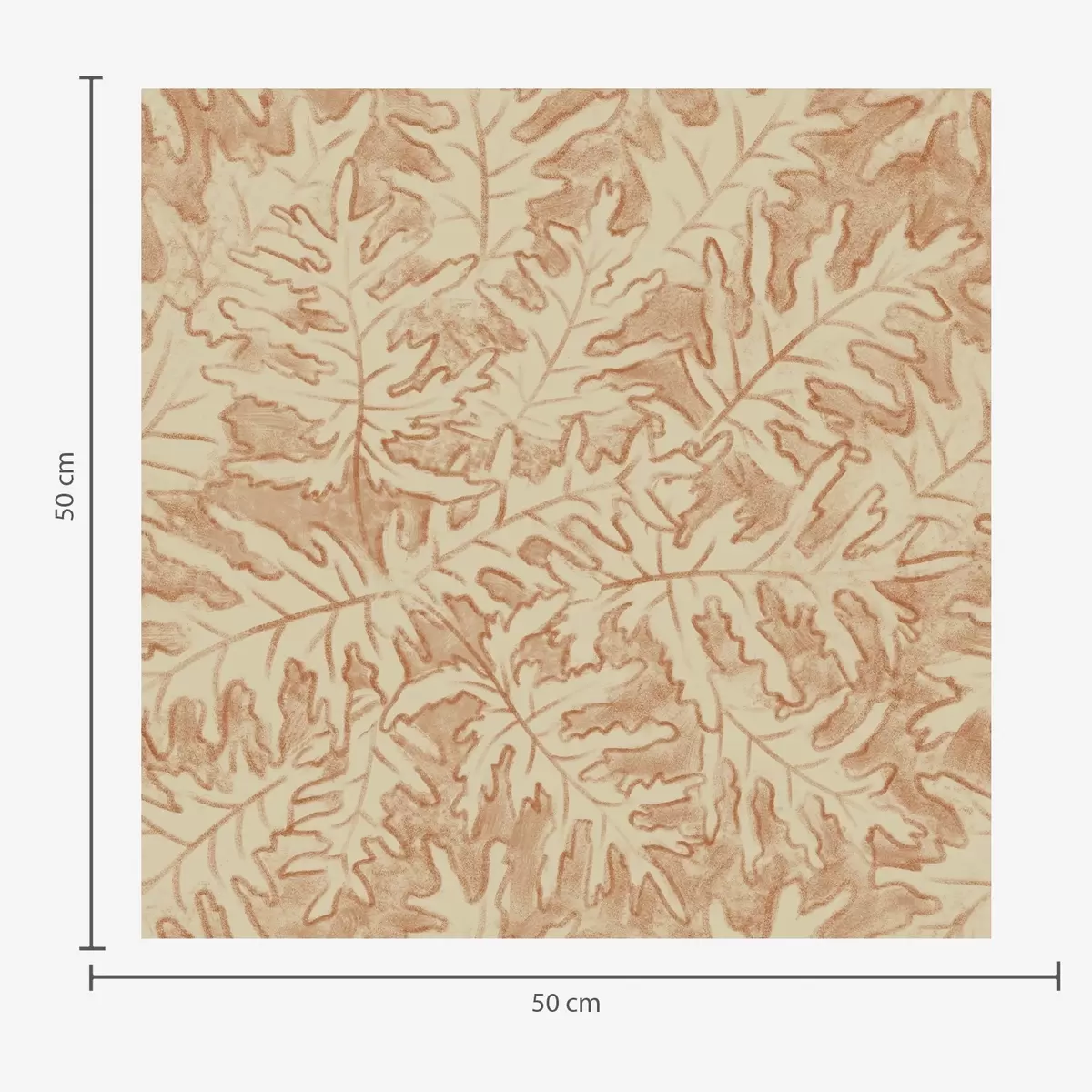 Papel tapiz Hojas grandes de roble en terracota sobre fondo crema Nr. a00846