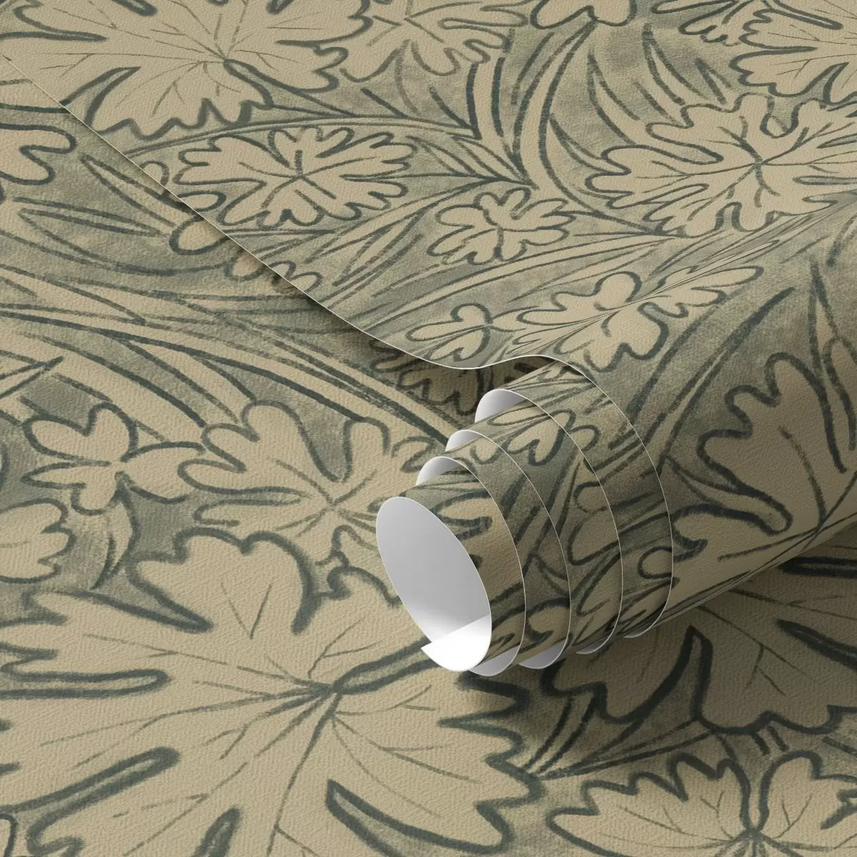 Papel tapiz Hojas y hierbas de campo en tonos gris oliva Nr. a00847v1