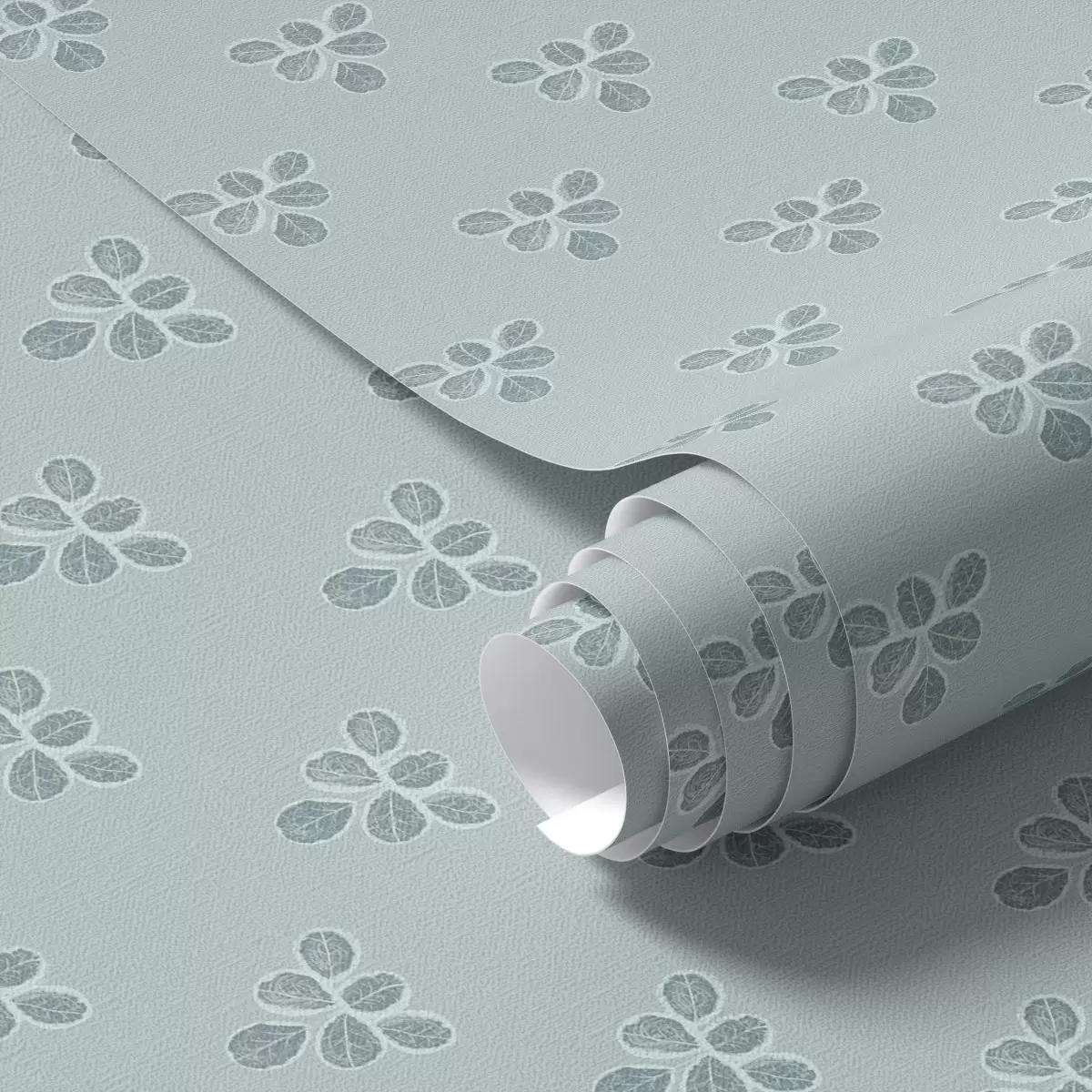 Papel tapiz Pequeña repetición: tríos de hojas en azul frío. Nr. a00848v1
