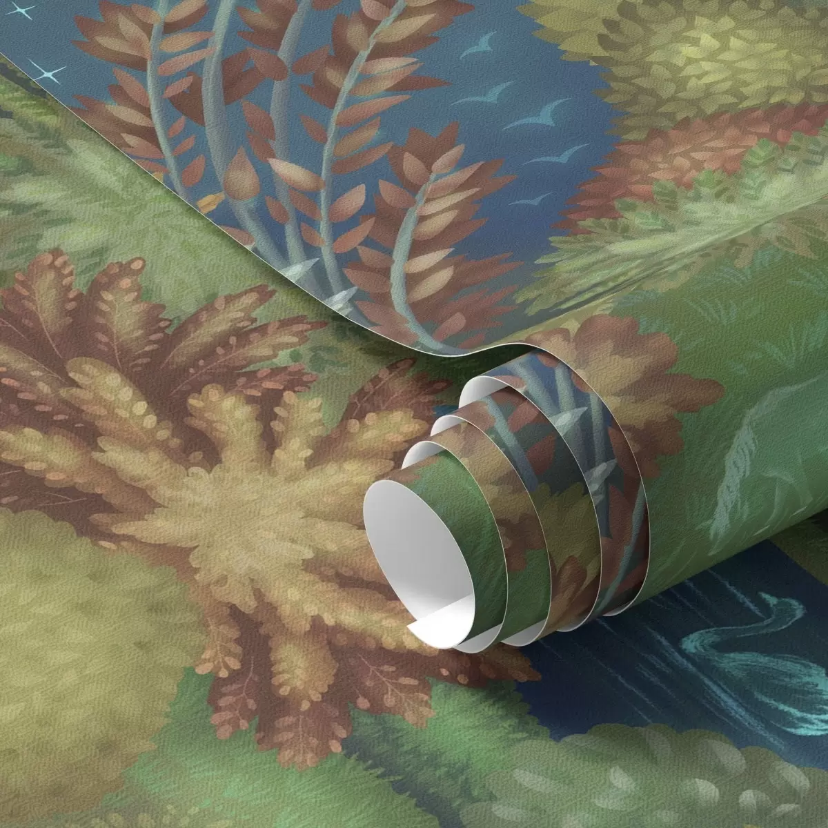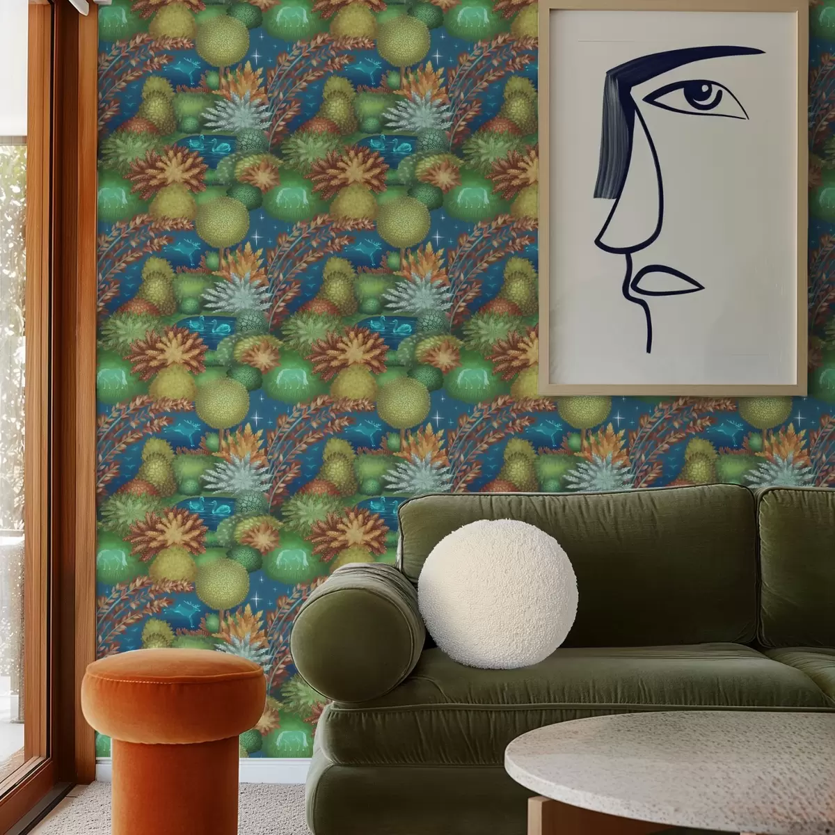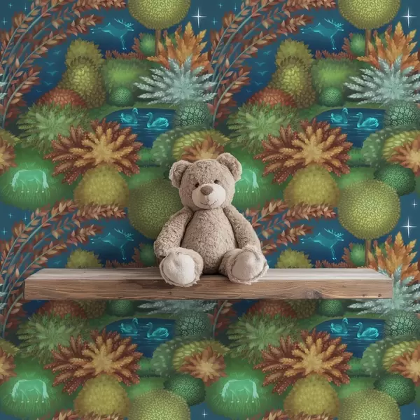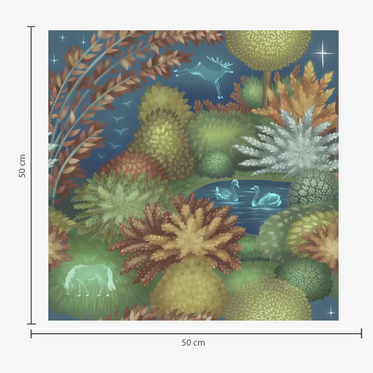 Papel tapiz Jardín nocturno de cuento de hadas con un lago y animales luminosos. Nr. a00851