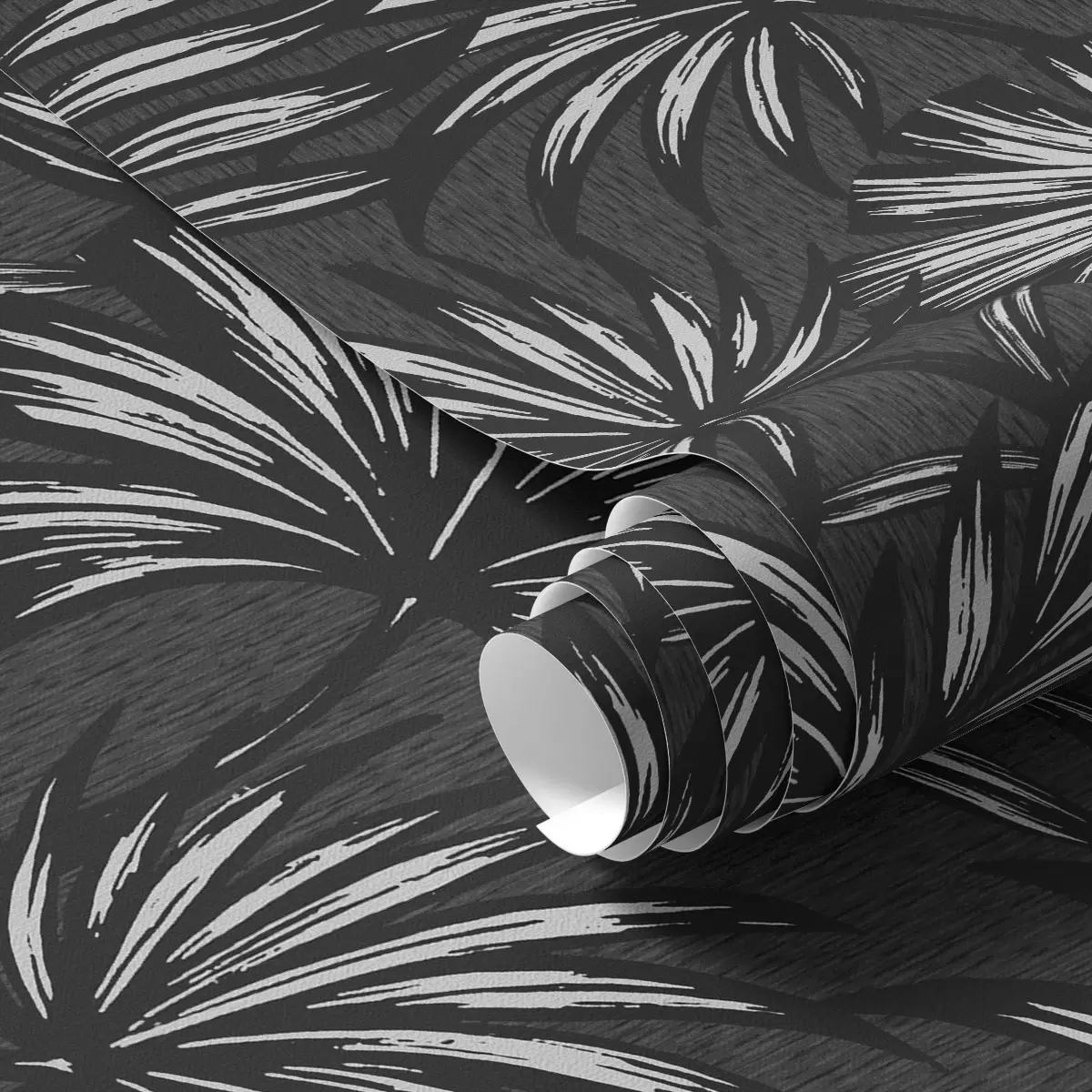 Papel tapiz Hojas de palmera blancas y negras sobre fondo oscuro Nr. a00891